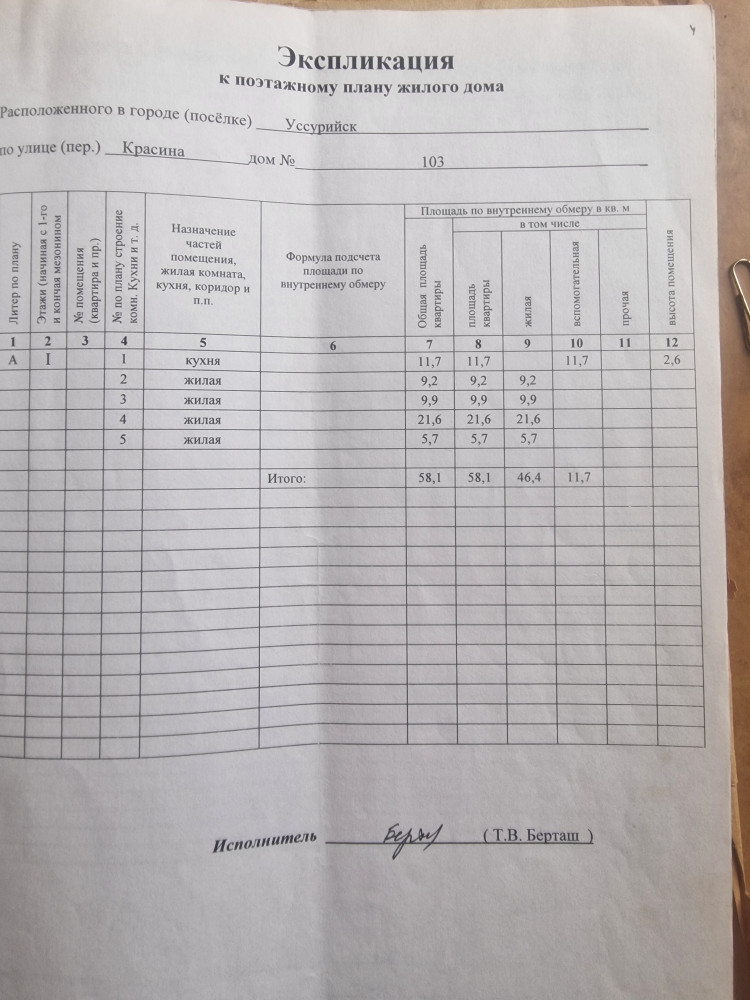 1-этажный дом, 58.1 м2, на продажу в Уссурийске, улица Красина, 103