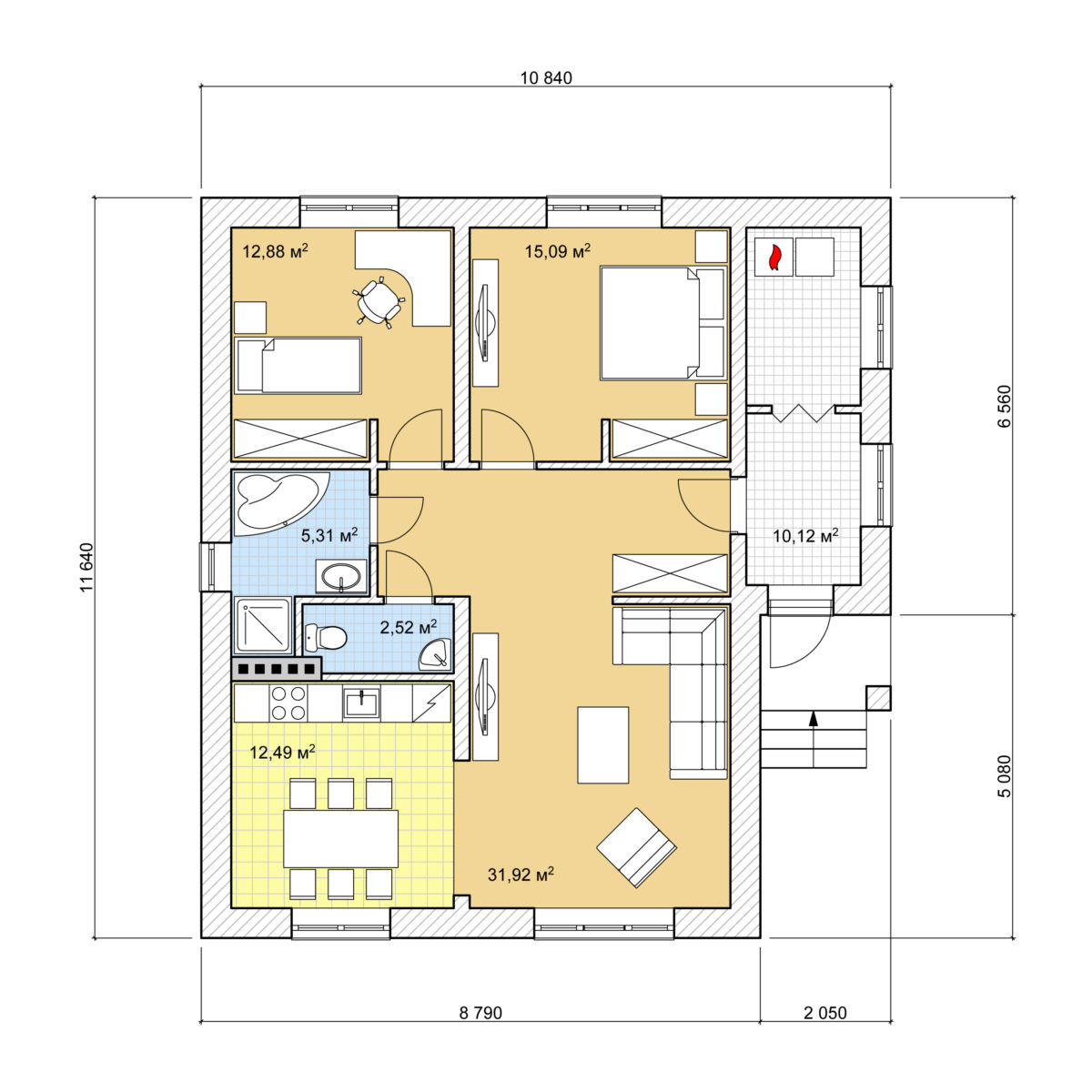Общая площадь 95 м2