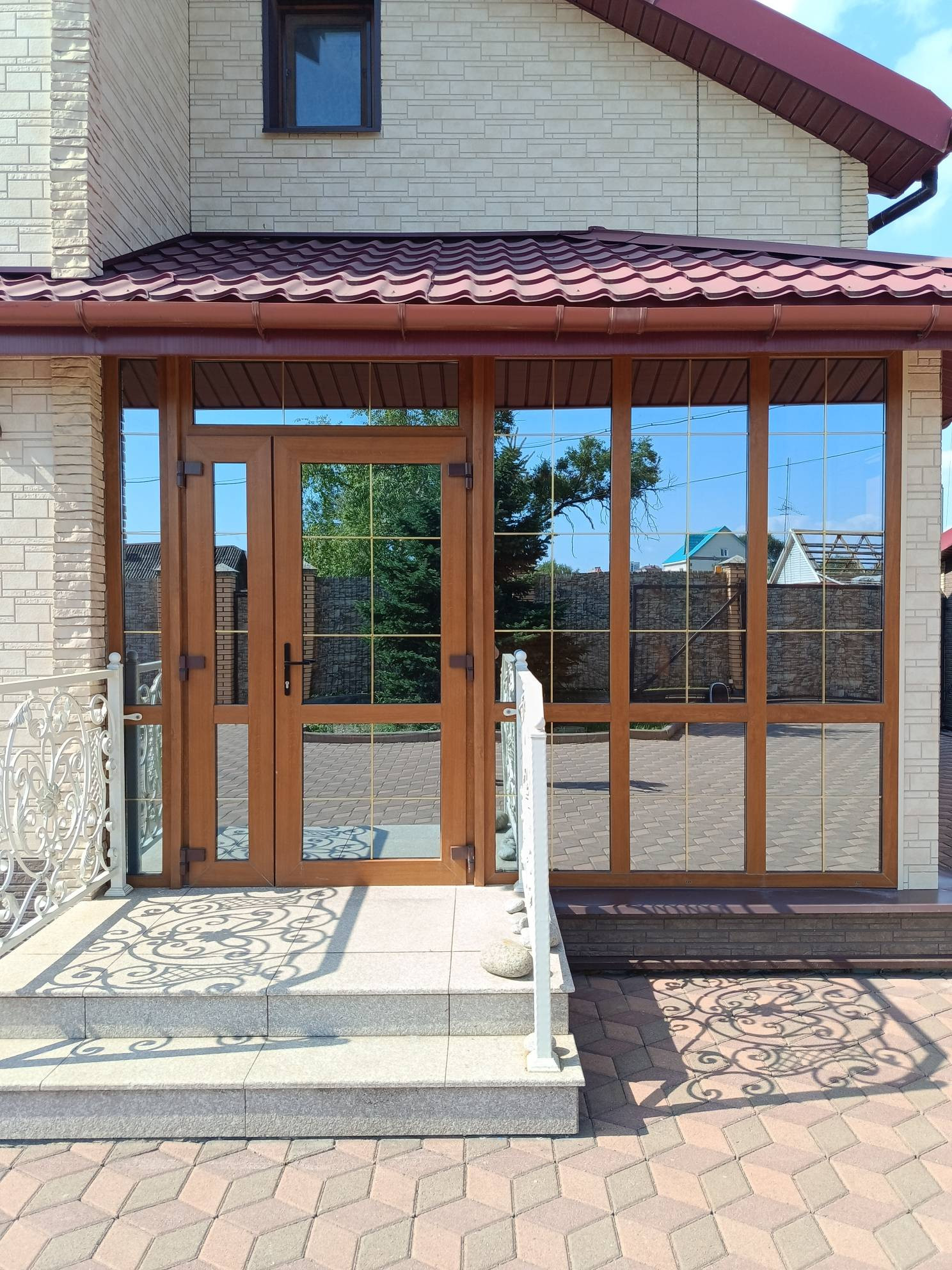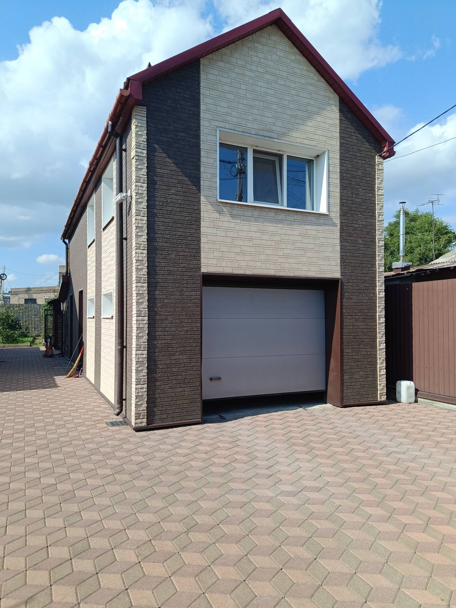 Участок отсыпан, огорожен забором из металлопрофиля, ворота откатные, с электроприводом. Весь двор выложен брусчаткой! По всему периметру двора ведется видеонаблюдение , установлена охранная сигнализация с тревожной кнопкой.