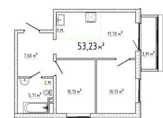 Общая площадь: 53.23 м2