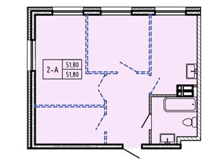 Общая площадь: 51.8 м2