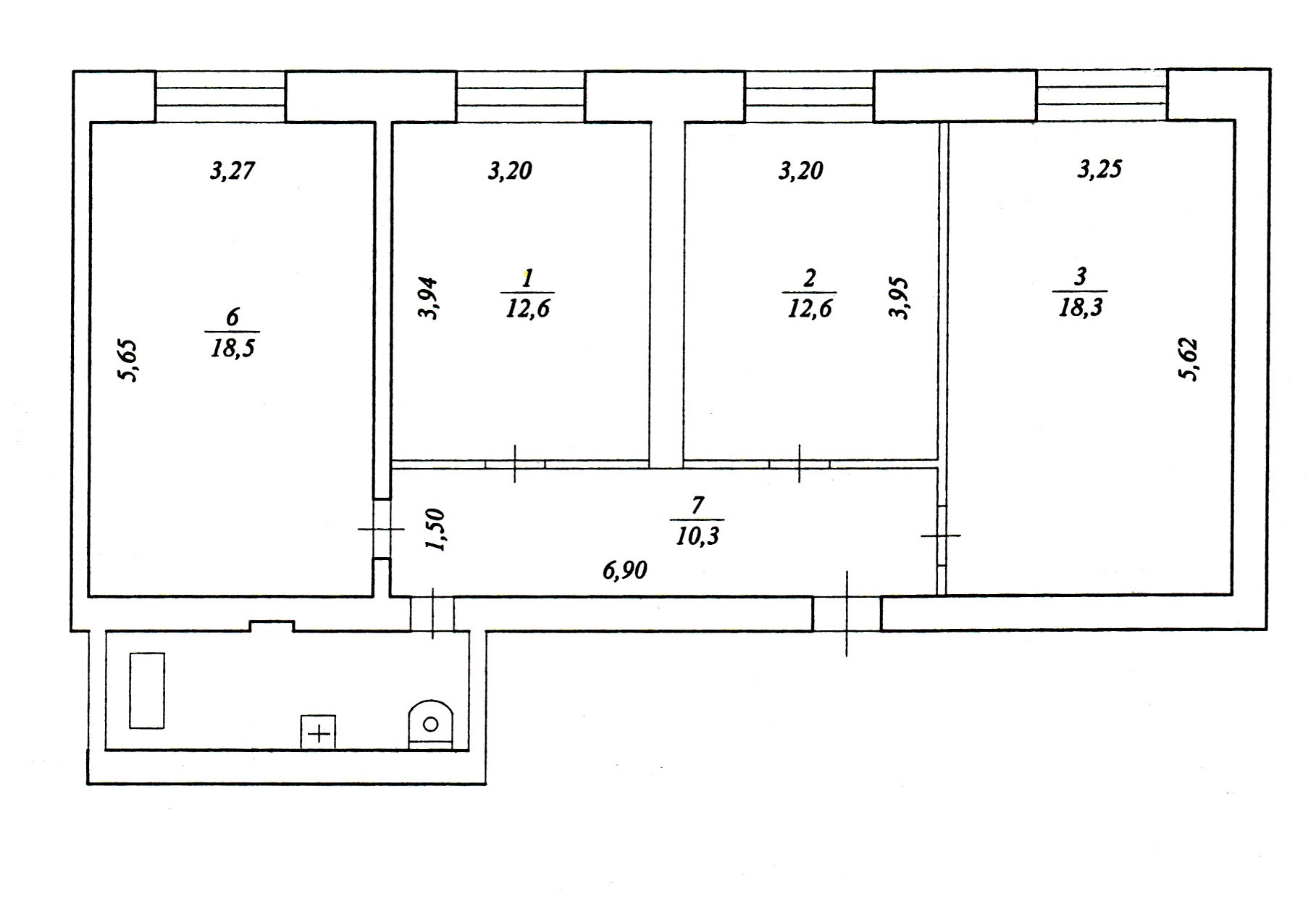 Квартира удобной планировки. Большая комната 18,3 кв.м., две по 12,6 кв.м.