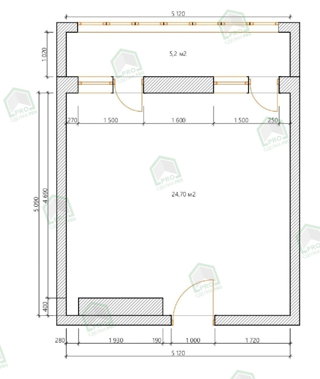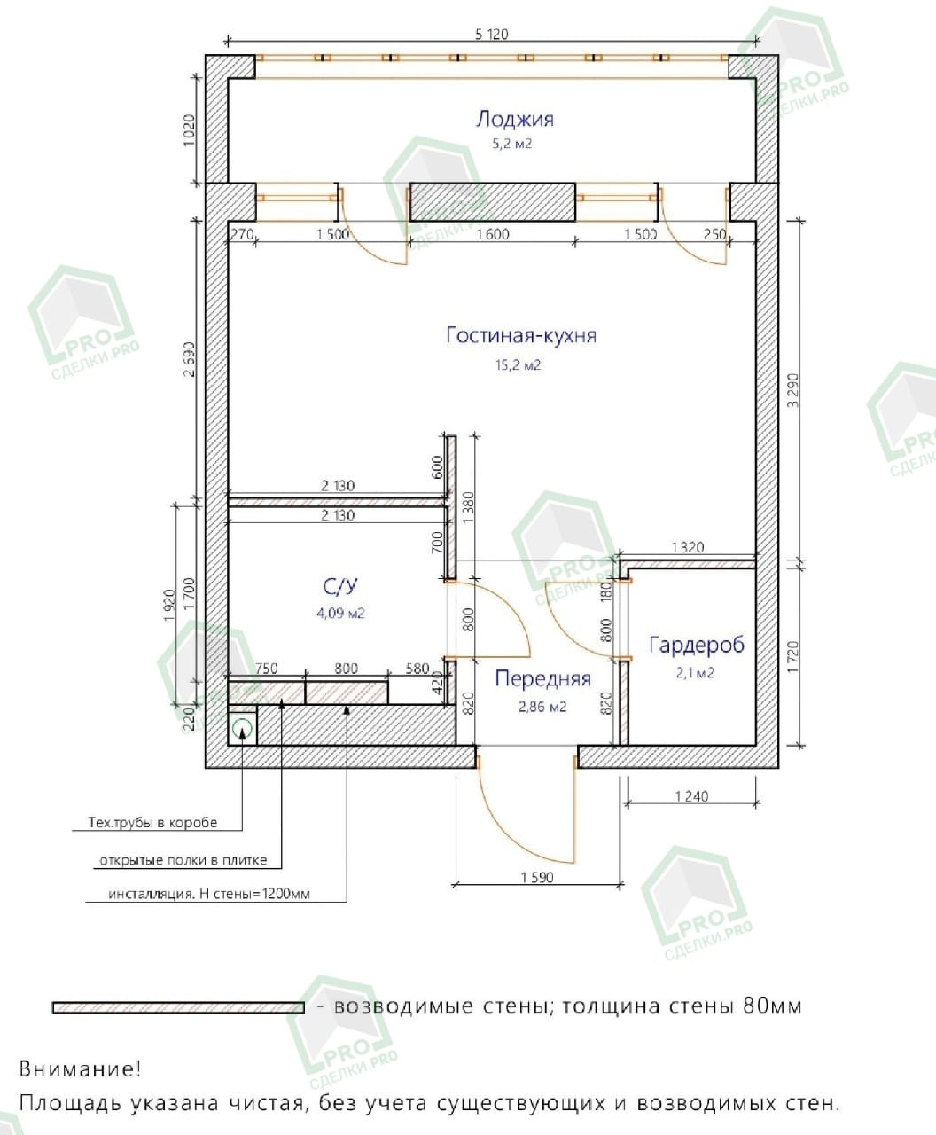 - Квартира свободной планировки, в черновой отделке.