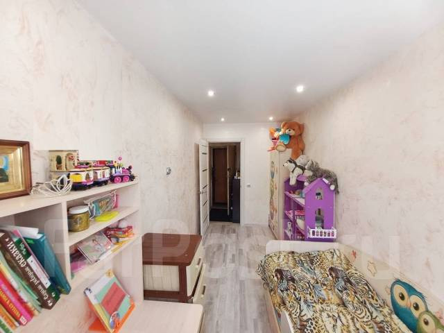 В детской комнате сделан отличный ремонт(натяжной потолок, ламинат, новая межкомнатная дверь, на стенах жидкие обои, установлены софиты). Другие комнаты в хорошем состоянии. Линолеум, пластиковые окна, поменяна сантехника, титан, железная входная дверь в квартиру.