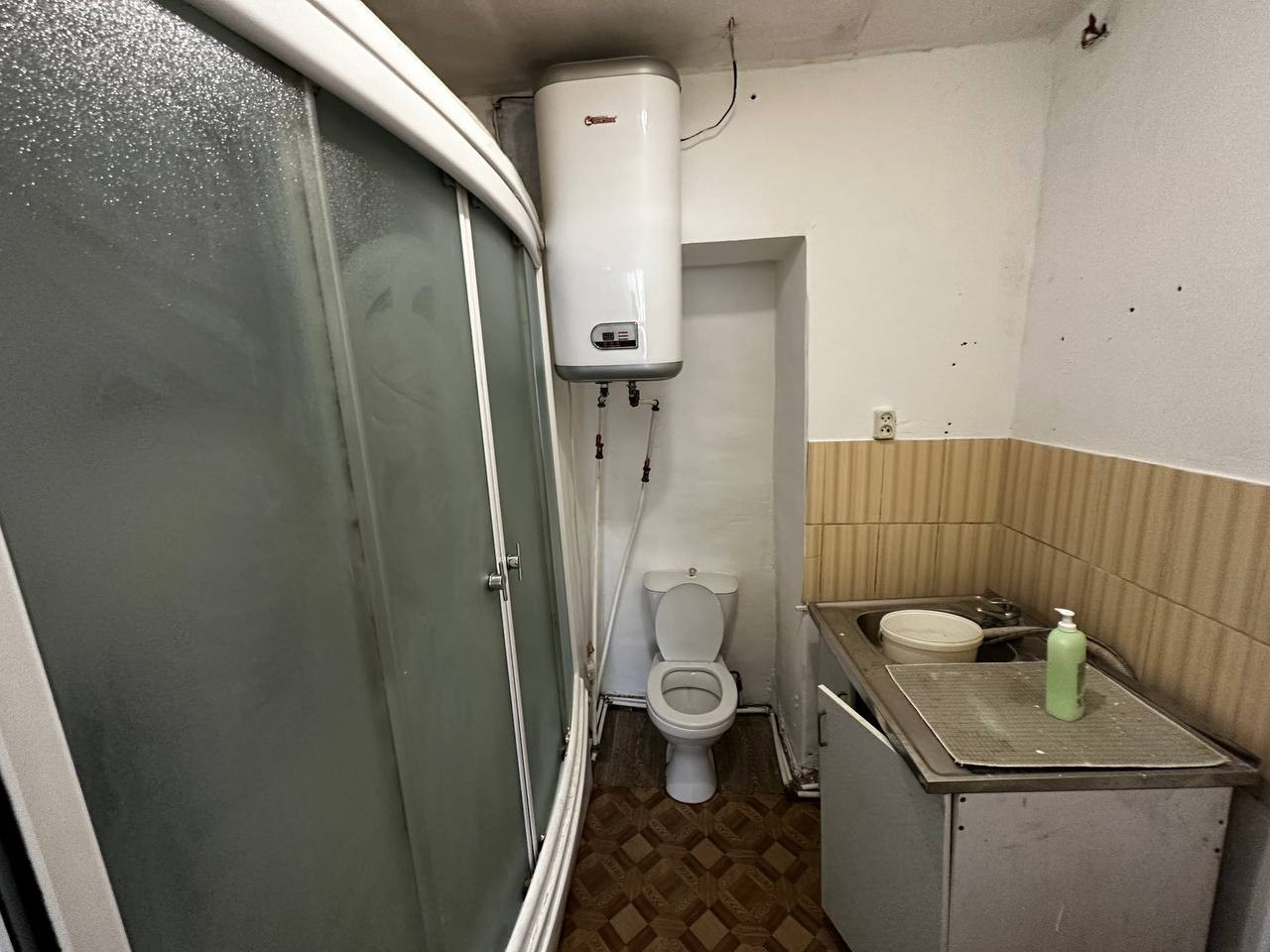 Санузел с большой душевой кабиной, горячая вода, кухонная зона, гардеробная.