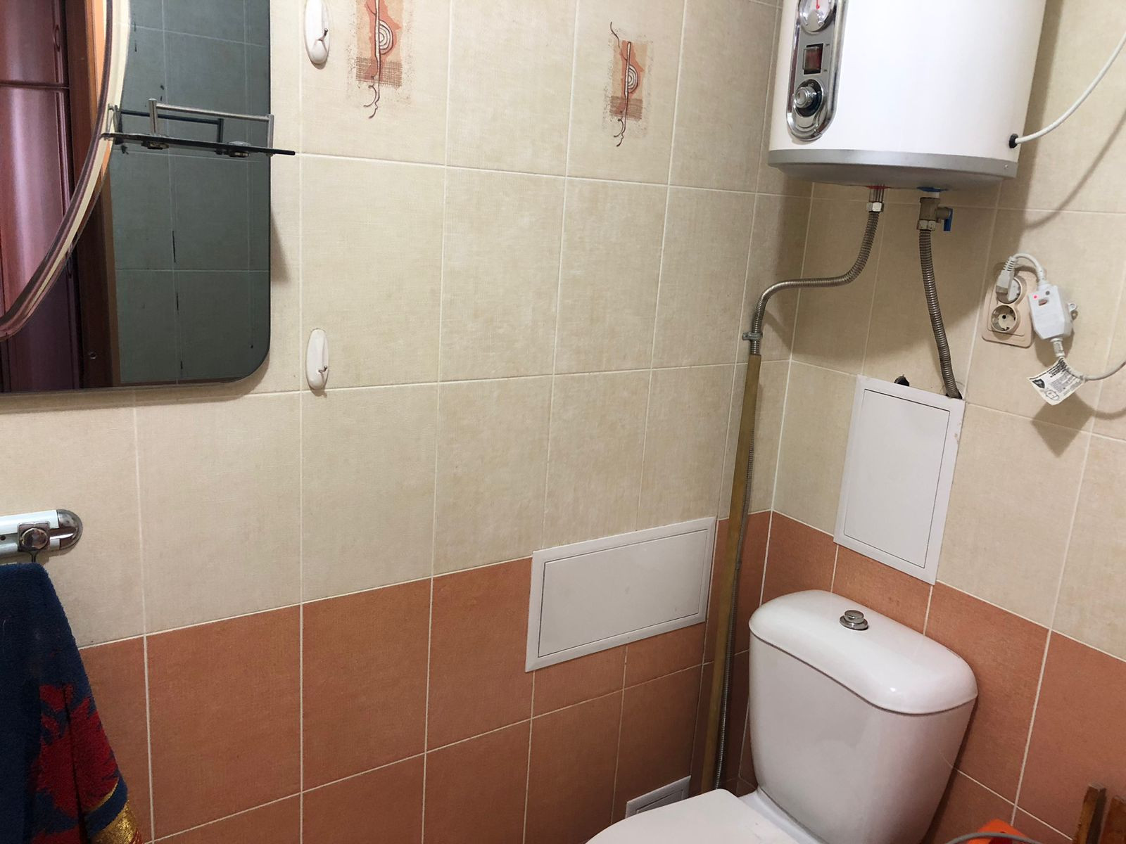 В ванной комнате плитка и тёплый пол.