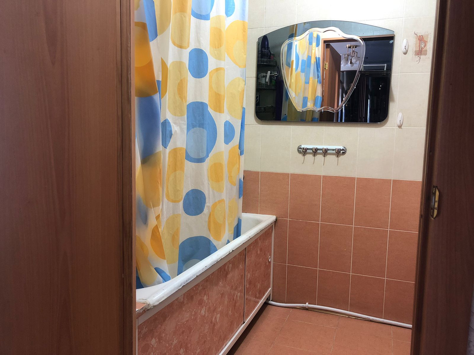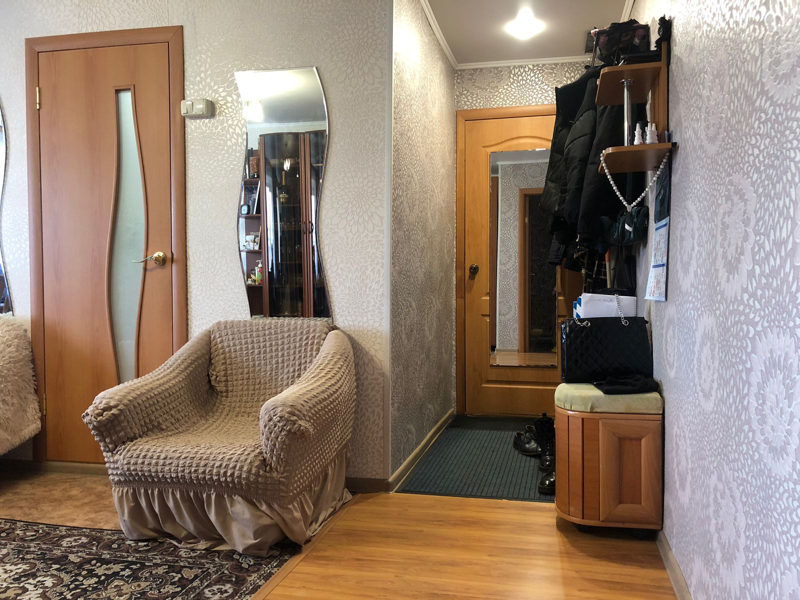 В прихожей дверь с зеркалом в пол.