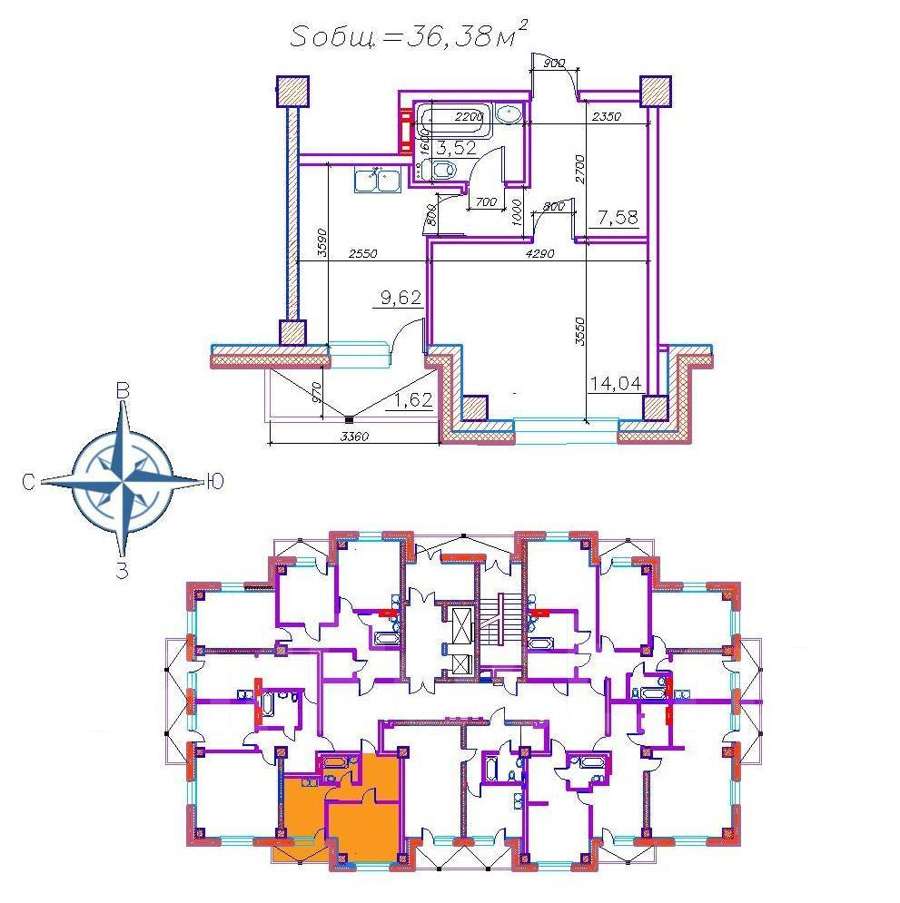 Общая площадь 36.38 м2