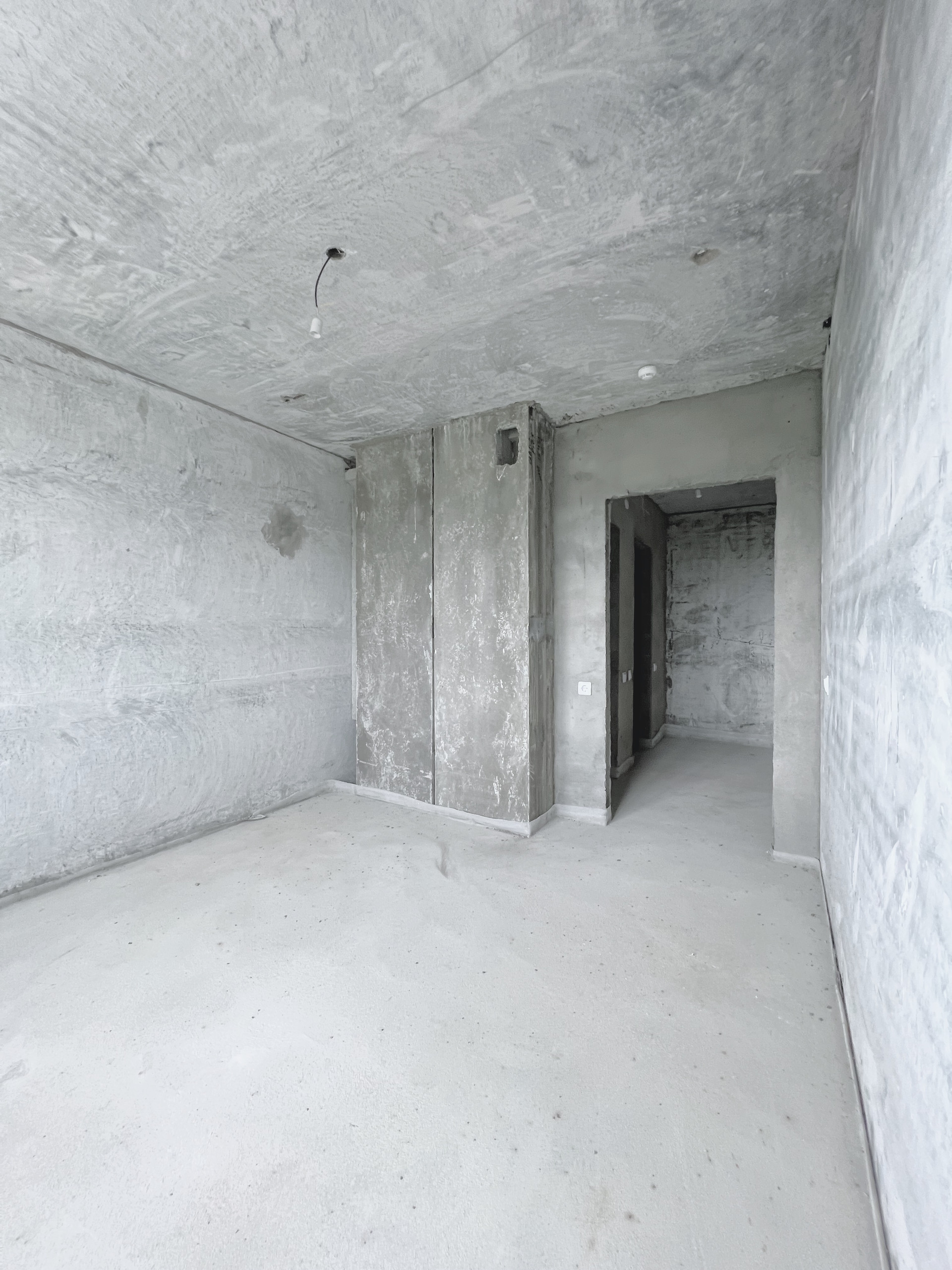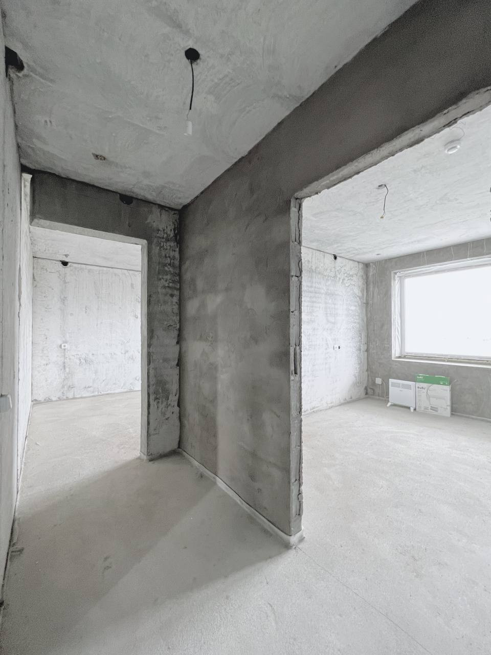 • Выполнена стяжка пола, установлены пластиковые окна, электричество разведено по всей квартире.