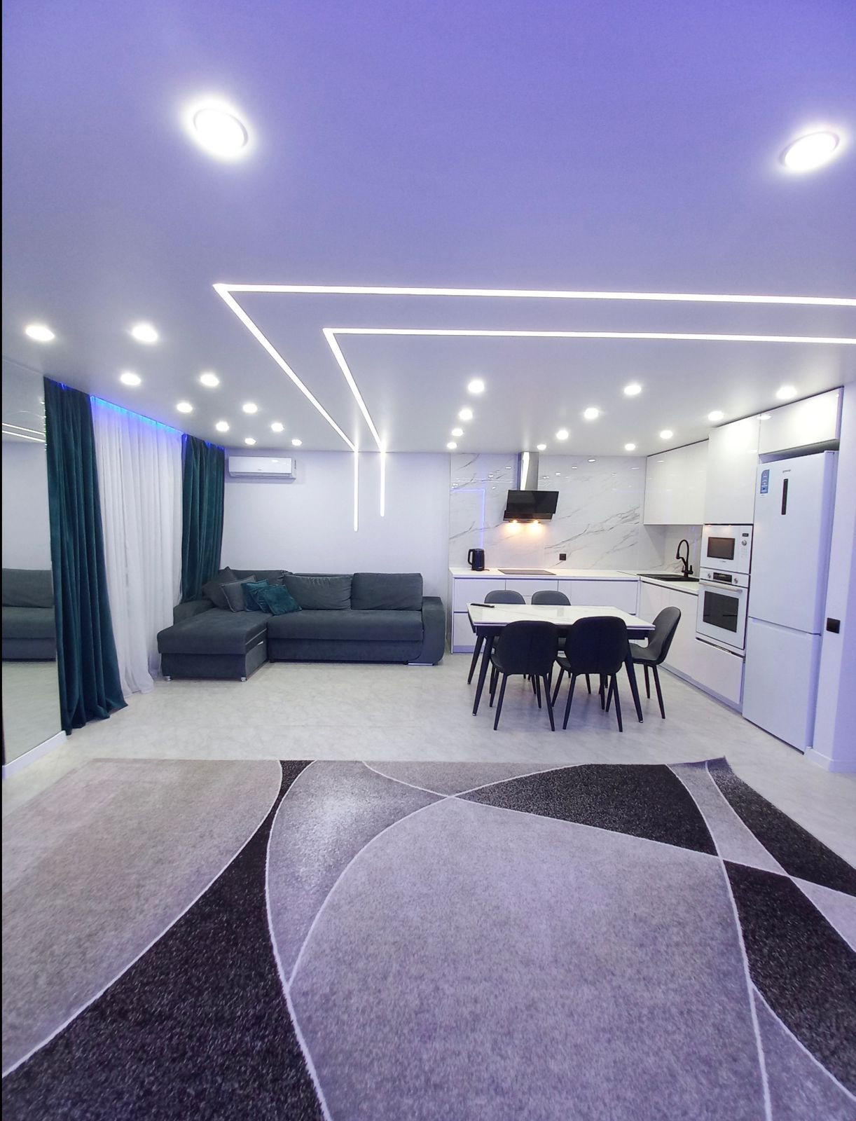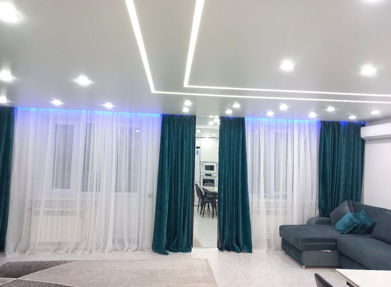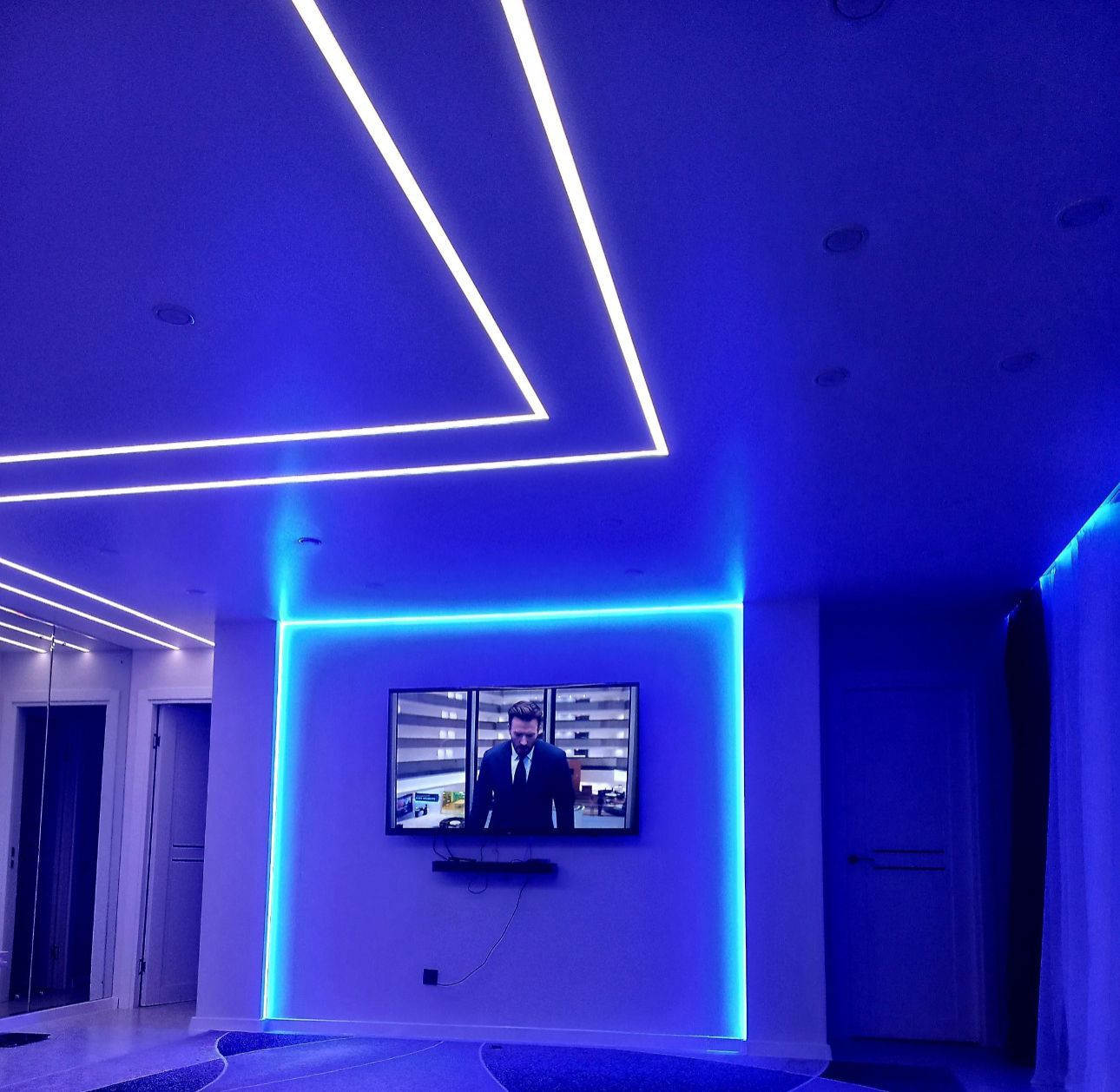 В квартире теплый пол, умный свет (софитыи ленты включаются по отдельности).