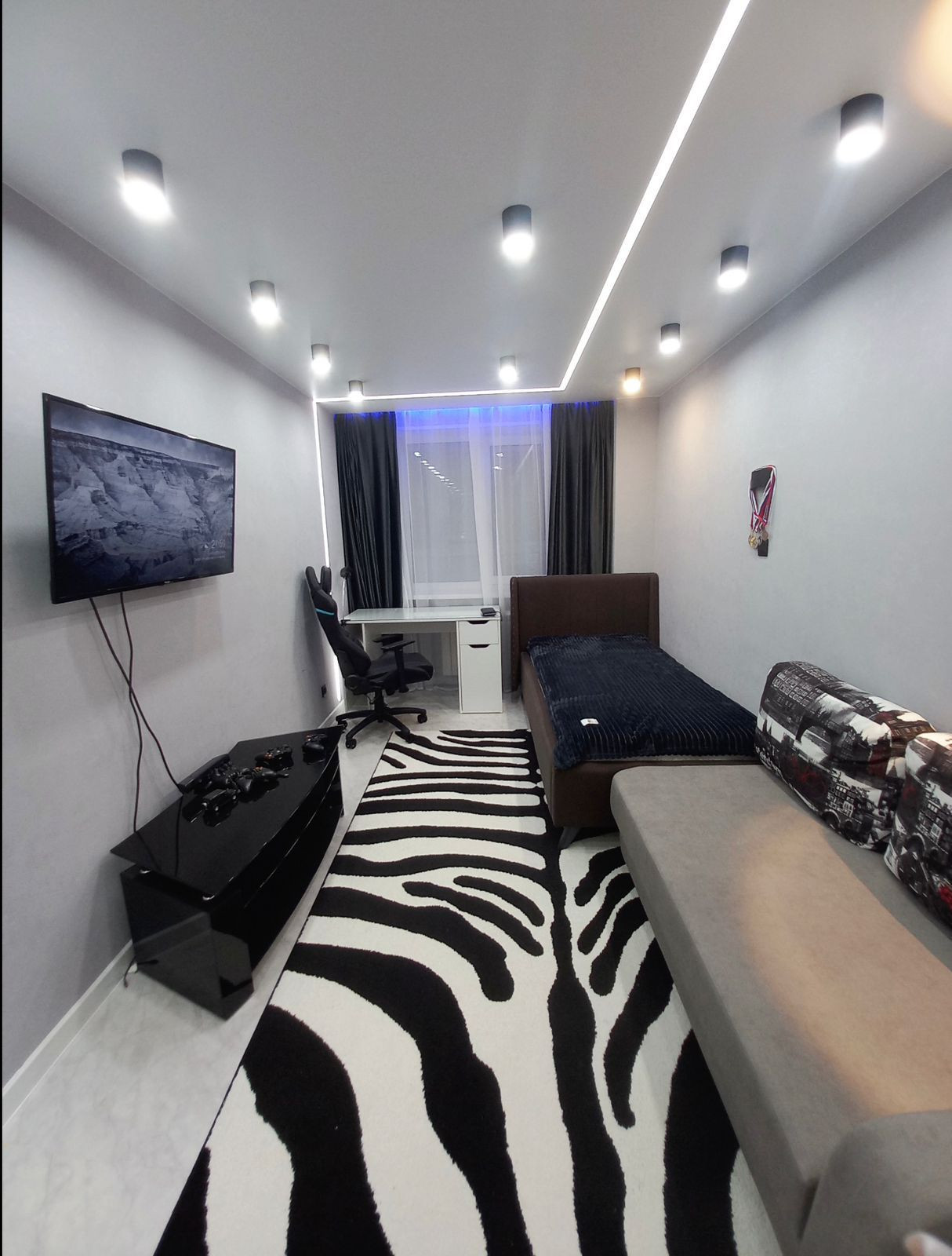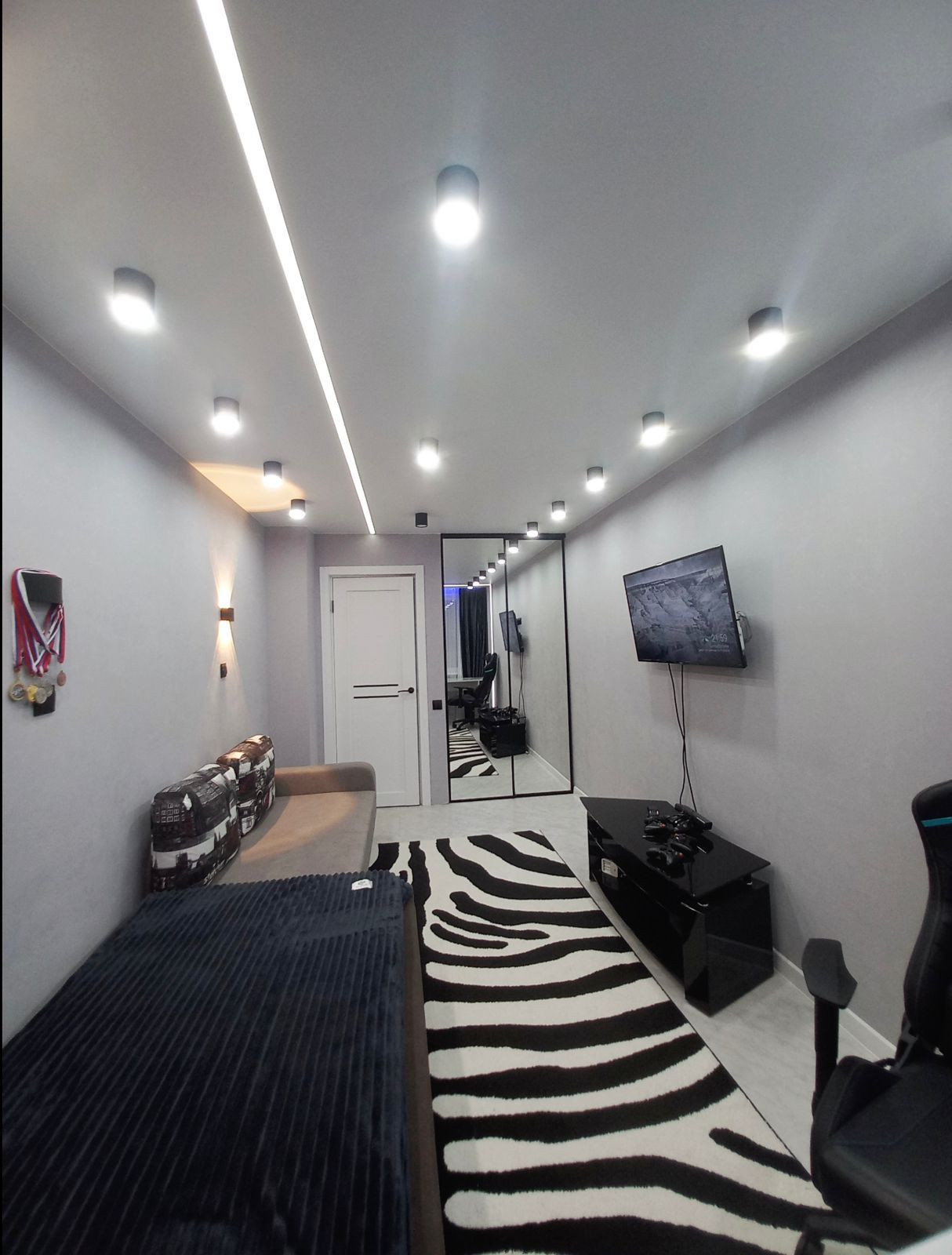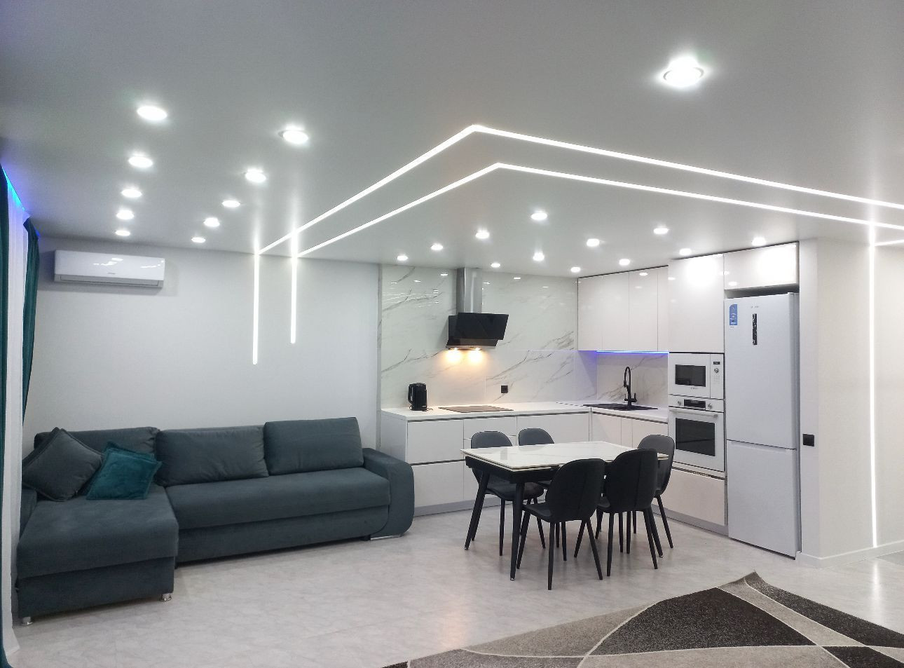 В квартире теплый пол, умный свет (софитыи ленты включаются по отдельности).
