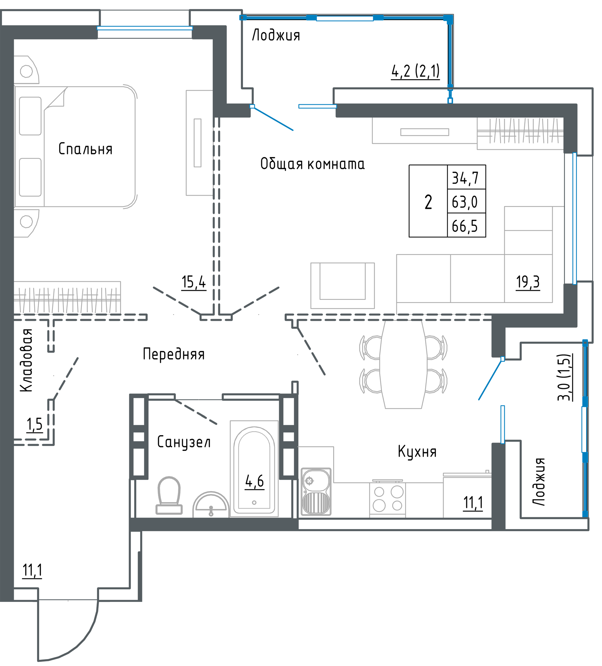 - Общая площадь 70.6 м2