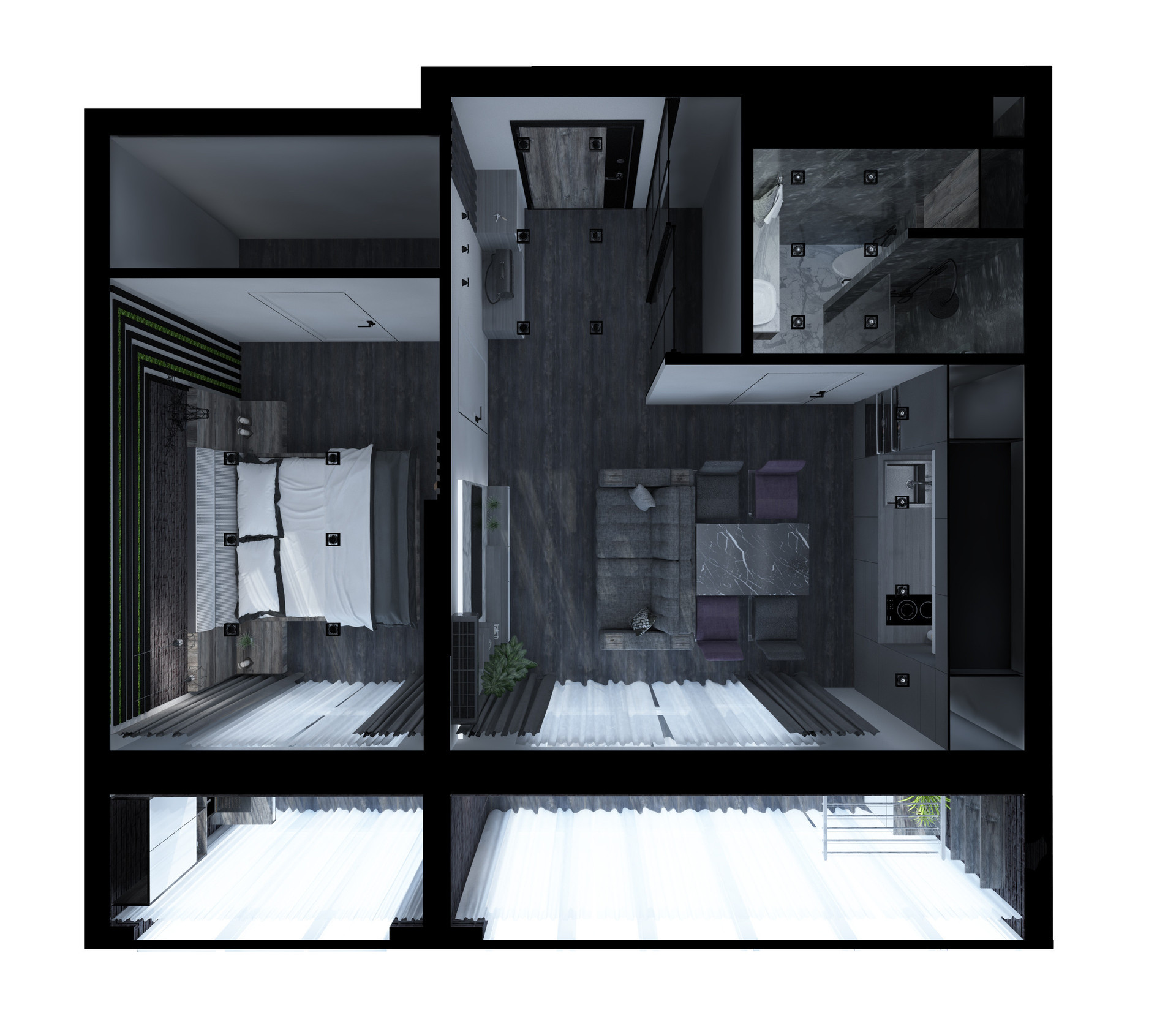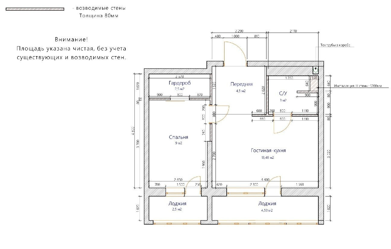 - Квартира свободной планировки, в черновой отделке.