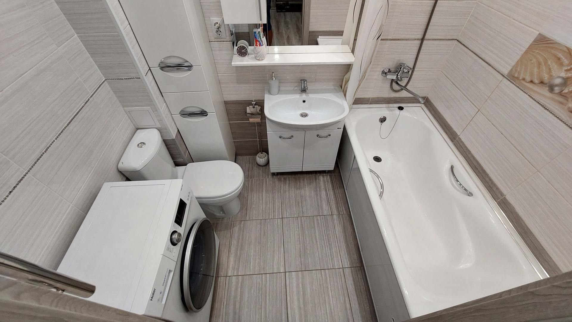 Сан узел просторный - совмещённый, ванна чугунная, тёплый пол.