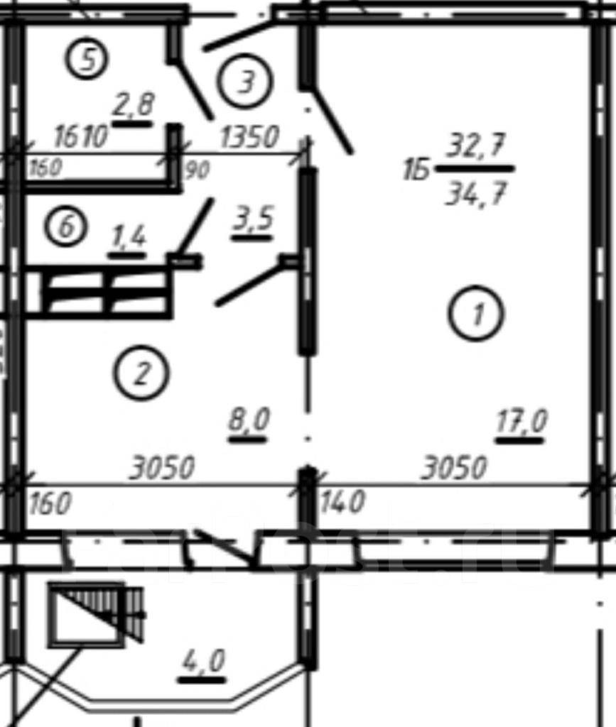 Общая площадь 34.7 м2