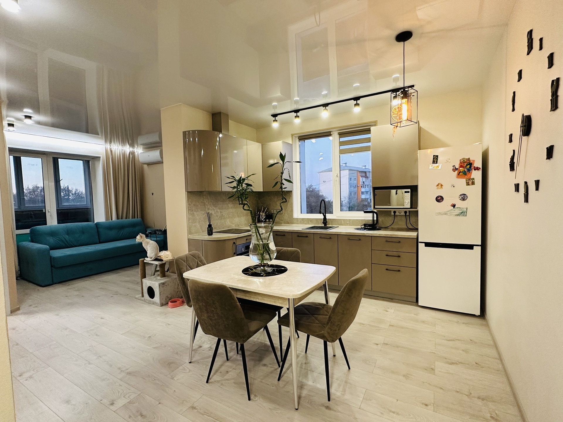 Продается отличная новая 3-х комнатная квартира с современным евро-ремонтом, в новом монолитном доме 2021 г. Расположение- 3 этаж в 13-этажном доме, постройки, Приобретена от застройщика. Общая площадь кв - 67,3 кв.м. В квартире две просторных спальни-14,3 кв.м и 11,9 кв.м, гостинная-10,3 кв.м, современная кухня-10,2 кв.м, лоджия- 3,6 кв.м, просторная прихожая-12 кв.м. Окна квартиры выходят на разные стороны (запад, восток, юг). Квартира светлая и теплая. В квартире сделан современный евро-ремонт из качественных материалов (для себя). Стены идеально выровнены и окрашены Tikkurila(моющееся покрытие). Натяжной потолок во всей квартире, На полу везде-ламинат с обустроенным электрическим теплым полом, в сан узле- керамогранит. Освещение-люстры и софиты. На кухне-новый встроенный кухонный гарнитур и новая качественная бытовая техника(индукционная плита Haier, духовой шкаф BOSH, посудомоечная машина Siemens, вытяжка), в гостинной - кондиционер Haier. В сан узле - титан на 80 л. В квартире установлены красивые, качественные Межкомнатные двери и Пластиковые окна. В доме 2 лифта(пассажирский и грузовой), На территории дома 2 детские площадки, спортивная площадка, много парковочных мест. Удобное расположение дома - в 2 минутах езды от центра и ЖД вокзала. Рядом с домом расположен большой супермаркет РЕМИ, детские секции, дет.сад, строится новая школа. Развитый район с удобной инфраструктурой.