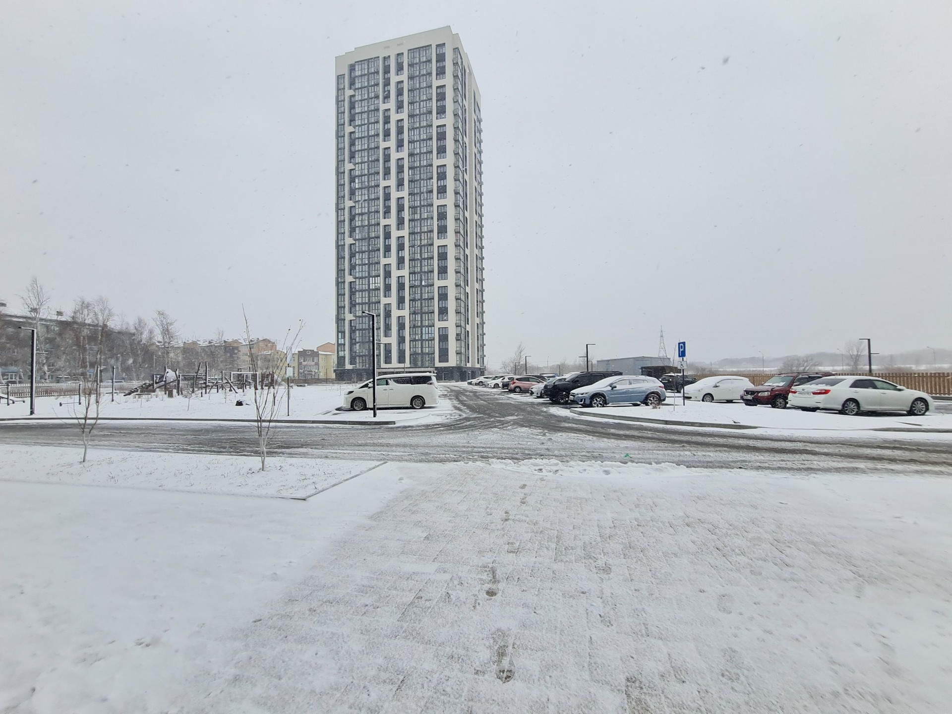 На территории комплекса предусмотрена общая надземная парковка. Пространство вокруг зданий продумано и удобно как для автомобилистов, так и для пешеходов. На территории нет опорных стен, откосов и прочих заградительных сооружений, что позволяет родителям с колясками свободно перемещаться по территории. Проезды вокруг домов сквозные, кроме того, предусмотрен и круговой проезд, что позволяет избежать блокировок проезда и опасных ситуаций, особенно в зимний период.