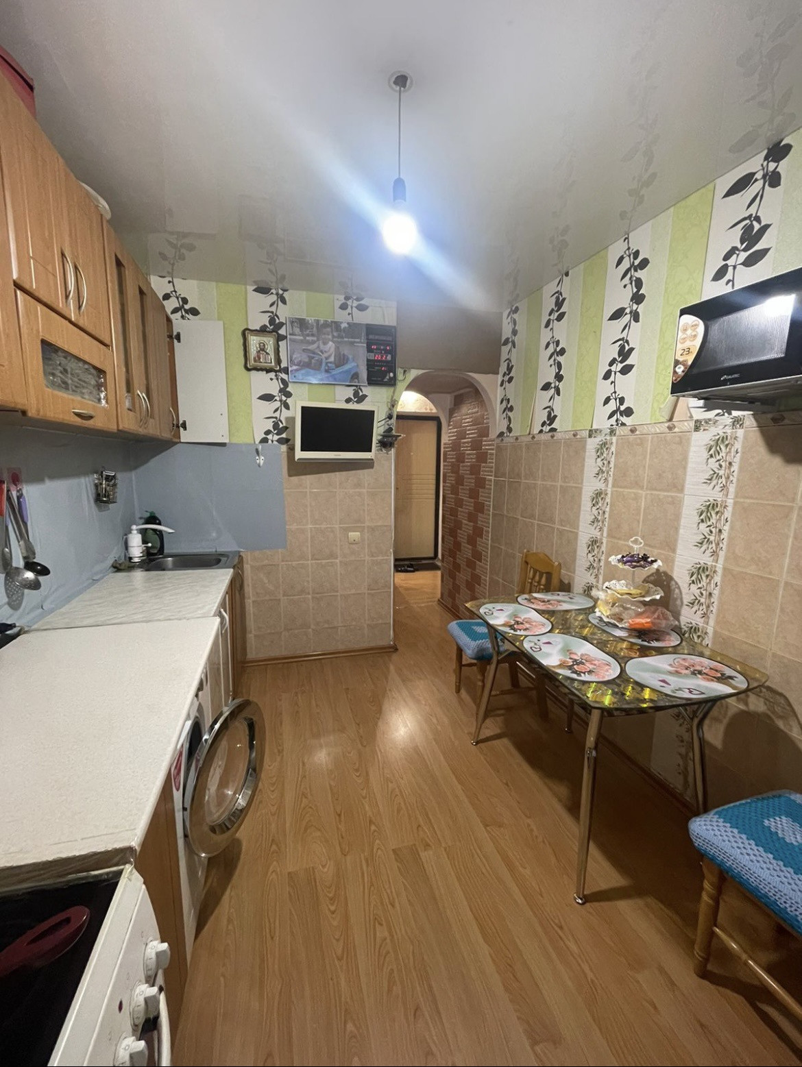Продаётся 2-комнатная квартира по адресу ул. Ленинградская, д.19. Дом 9-тиэтажный, не старый, несколько лет назад полностью отреставрирован фасад. Квартира находится на 5 этаже. Комнаты просторные, не проходные, кухня просторная, санузел совмещённый. Неоспоримым плюсом квартиры является большая утеплённая лоджия. Ремонт простой, не свежий, но квартира пригодная для проживания. Двор большой, много парковочных мест, детская площадка. Развитая инфраструктура, автобусная остановка, магазины, аптеки, все в шаговой доступности.