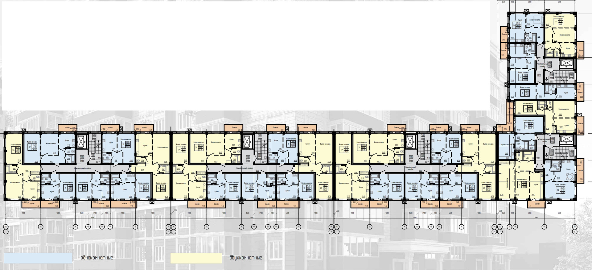 1 - комнатные квартиры площадью: 36,78 кв.м.,36,79 кв.м., 38,77 кв.м., 39,50 кв.м., 40,75 кв.м., 50,96 кв.м., 55,25 кв.м.,
