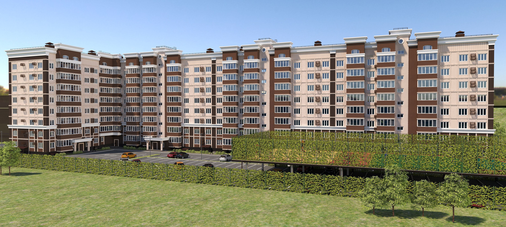 - придомовая территория полностью огорожена, предполагается наличие шлагбаумов.