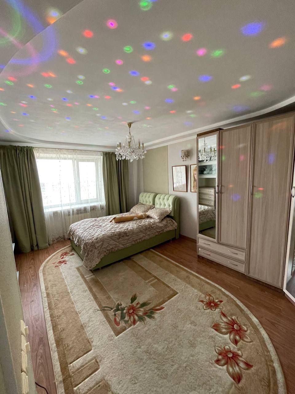 Теплая, светлая, большая квартира в самом центре города, лоджия выходит на центральную площадь, откуда каждый праздник открывается великолепный вид на салюты. Окна выходят на запад, юг и восток.
