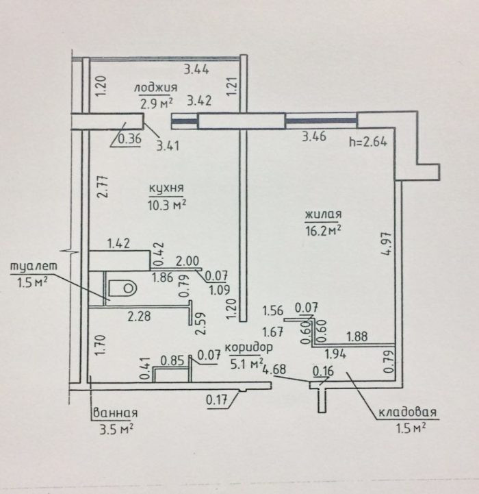 Жилая площадь 32.2 м2