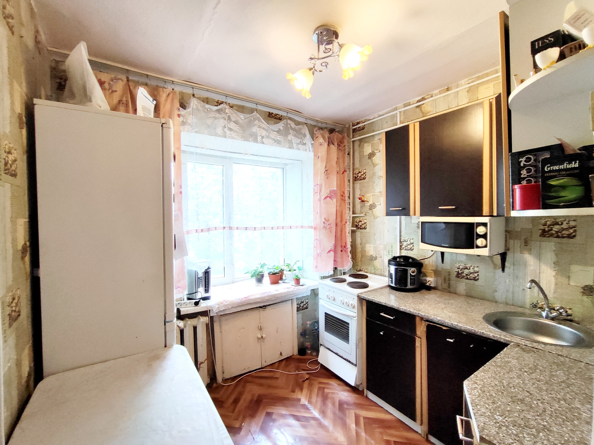 Из мебели и техники остается кухонный гарнитур, титан.