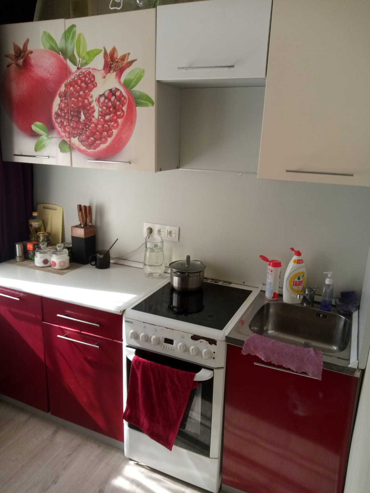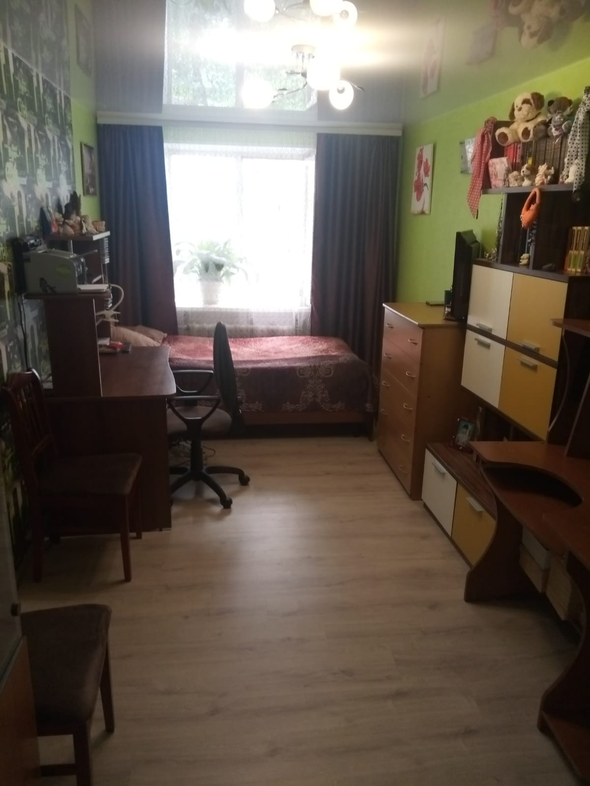 Квартира с хорошим ремонтом (ламинат, натяжные потолки, пластиковые окна....) и мебелью и техникой ( стенка с комодом, угловой шкаф, стеллаж, шкаф-купе, кухонный гарнитур, титан, стеклокерамическая плита с духовкой, кондиционер)
