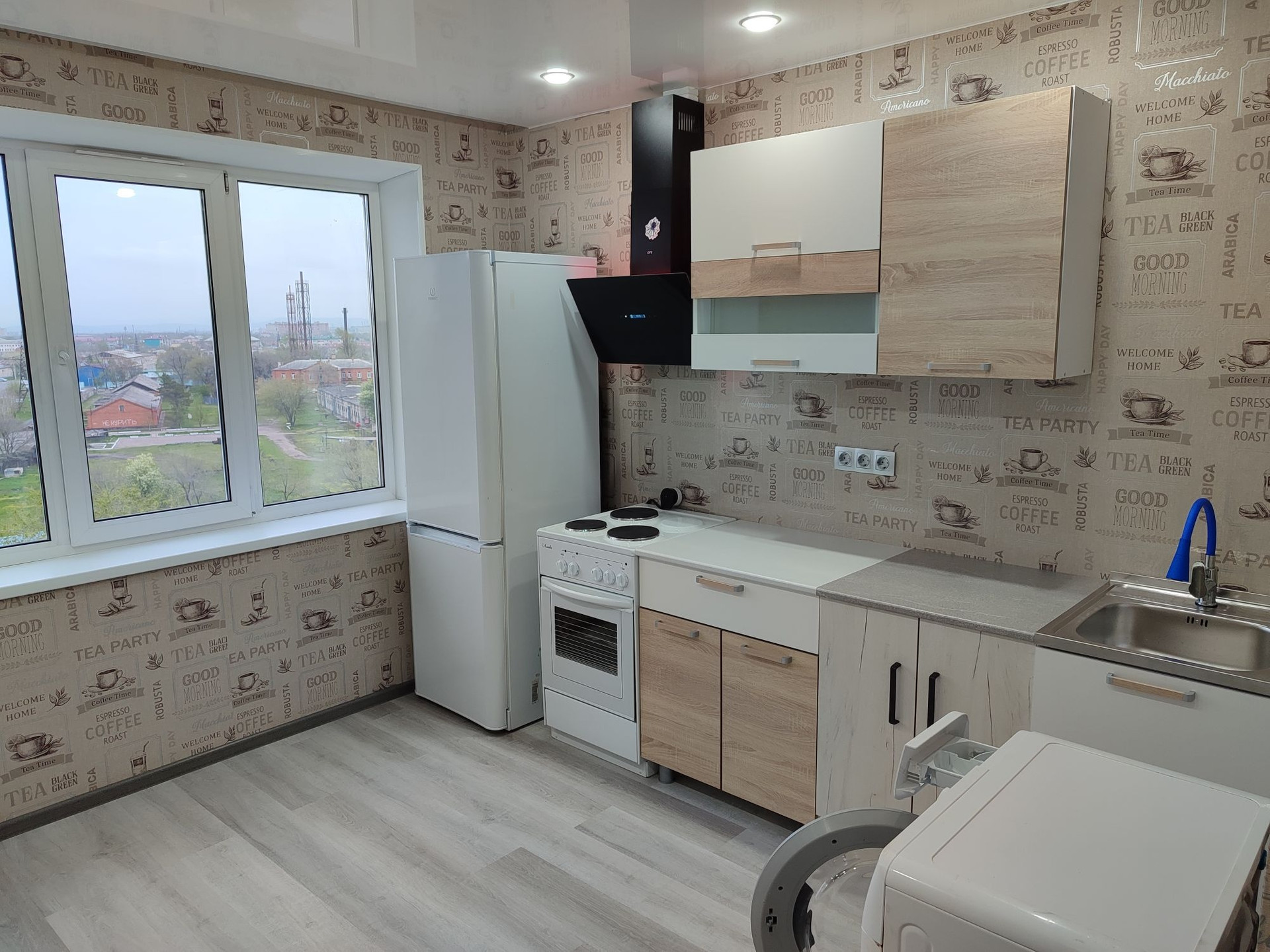 Уже из имеющегося в квартире есть плита, холодильник,кухонный гарнитур,стиральная машинка,компьютерный стол, шкаф, диван