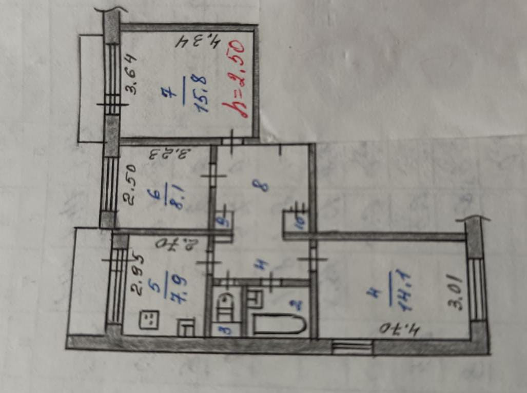 Высота потолков 2.5 м