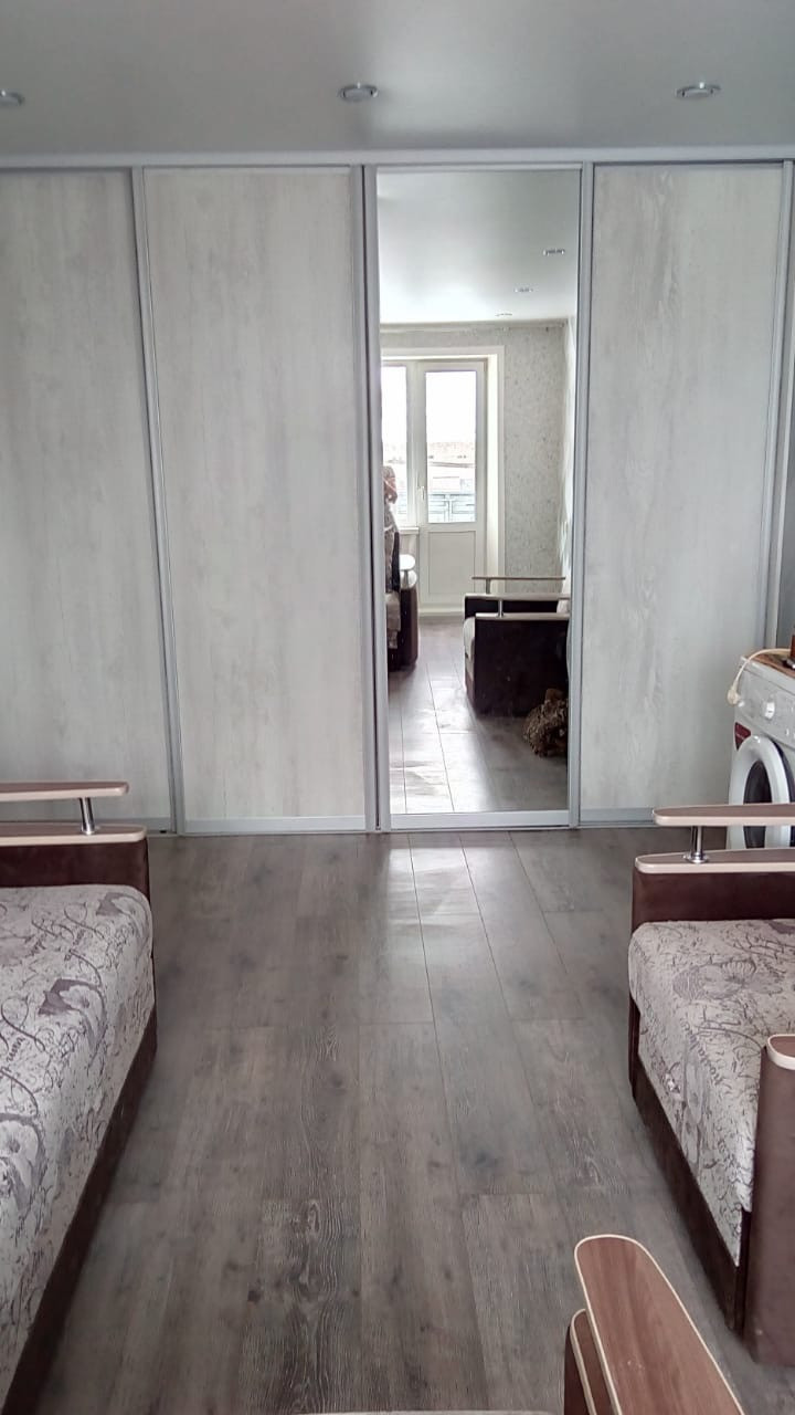 В большой комнате заменена батарея, сделан натяжной потолок, ламинат, шкаф-купе;