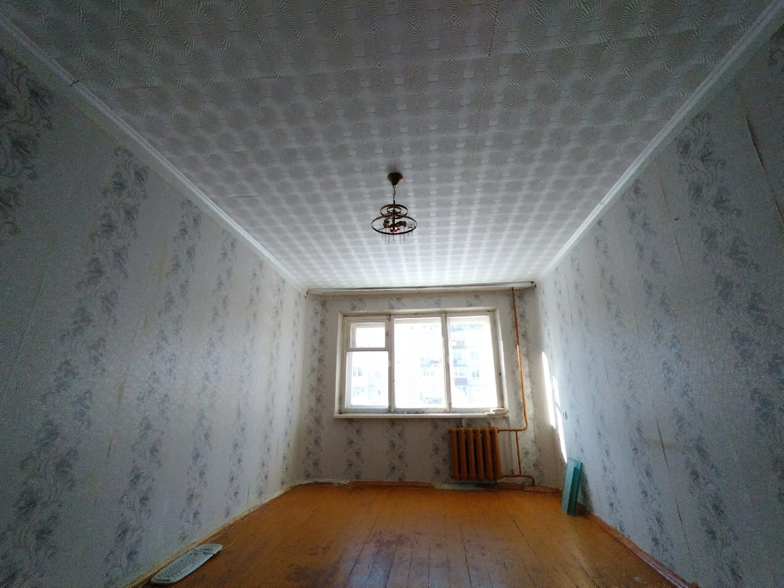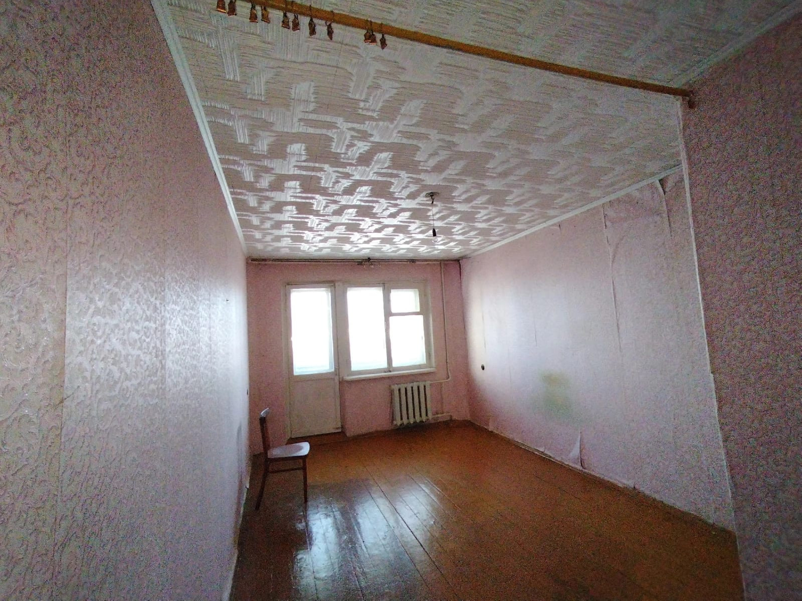 Из того, что не надо будет переделывать - потолок, заклеен красивой, самой толстой потолочной плиткой. Двери и окна старые (современные пластиковые только на балконе). Пол деревянный, без линолеума. Плитка в ванной отлетела от стены. Два крана на кухне и в ванной капают, но приборы учёта новые, в остальном сантехника в порядке (старые трубы заменили).