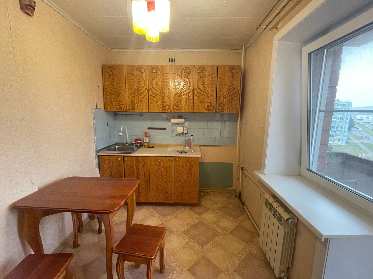 Продам квартиру необычной планировки, очень теплая, светлая, большой балкон( без ремонта), ванна/туалет кафель, большой коридор( встроенный шкаф), есть большой отдельный тамбур. В кухне окно пвх, частично батареи поменяны, на полу ламинат, линолеум. Возможен торг. Остается мебель.