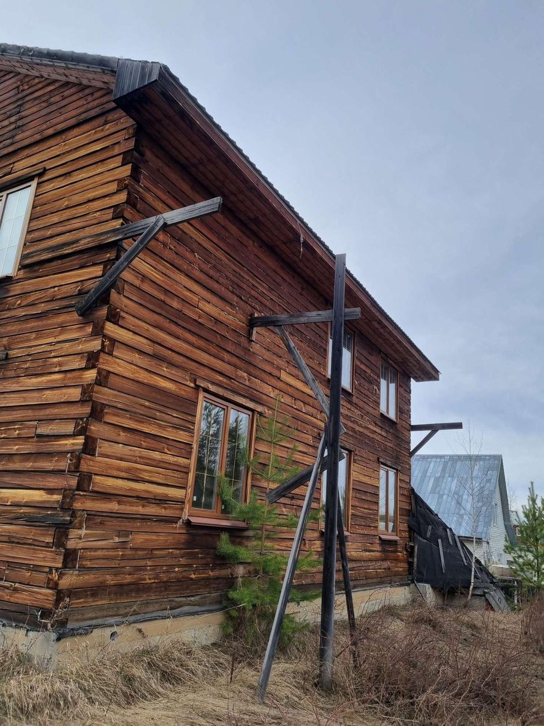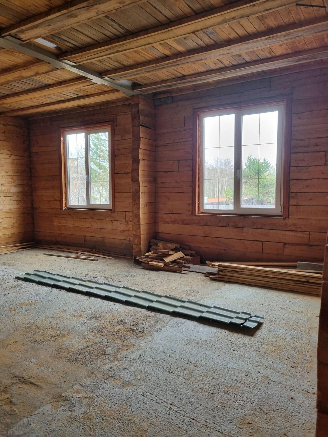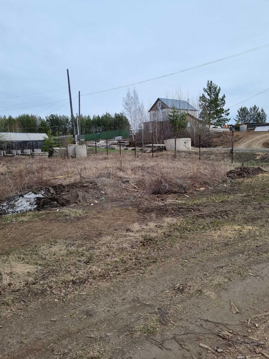 Участок расположен  в тихом и живописном районе 18 соток в  собственности. Дом: деревянный, брус 200х200, жилая площадь 250м2, цокольный этаж 120м2, подвальное помещение,контур закрыт, остекление. Дом без отделки. Высота потолков 1 этаж - 3,2м, 2 этаж- 2,8м. Для второго этажа половая рейка в наличии. Коммуникации по границе участка. Электричество 30КВт. Стройматериалы на участке: жби фс блоки, плиты перекрытия, лотки, кольца, трубы для подводка коммуникаций.