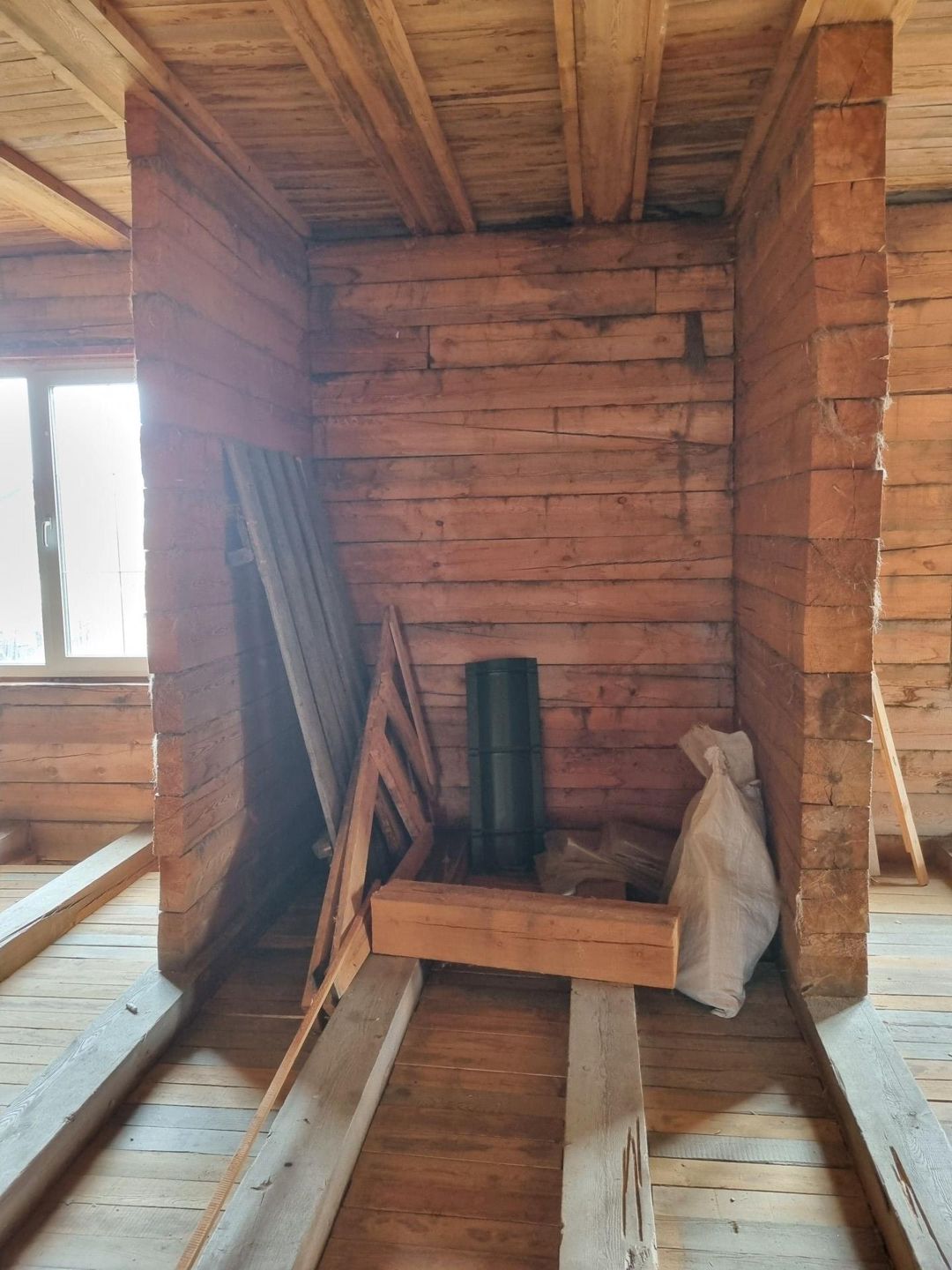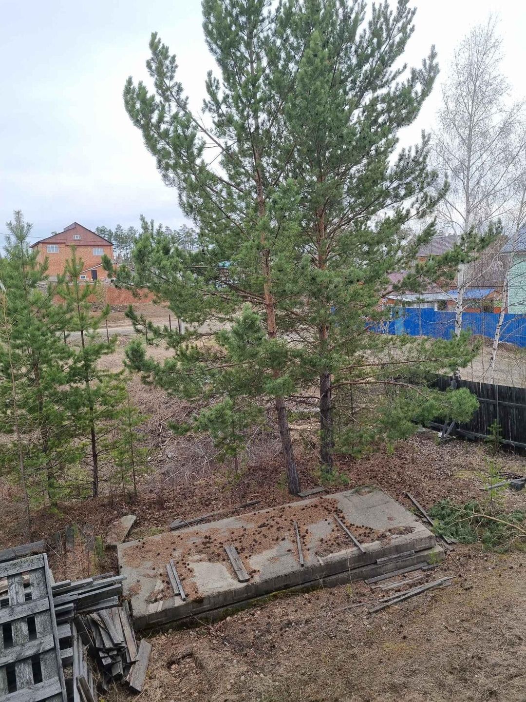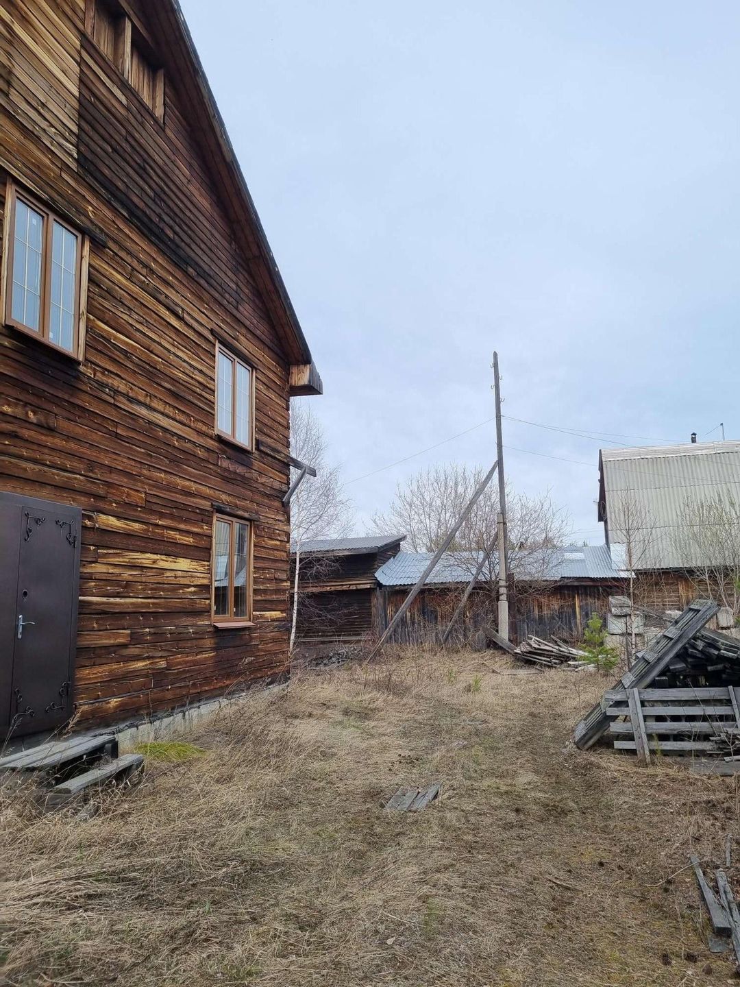 Участок расположен  в тихом и живописном районе 18 соток в  собственности. Дом: деревянный, брус 200х200, жилая площадь 250м2, цокольный этаж 120м2, подвальное помещение,контур закрыт, остекление. Дом без отделки. Высота потолков 1 этаж - 3,2м, 2 этаж- 2,8м. Для второго этажа половая рейка в наличии. Коммуникации по границе участка. Электричество 30КВт. Стройматериалы на участке: жби фс блоки, плиты перекрытия, лотки, кольца, трубы для подводка коммуникаций.
