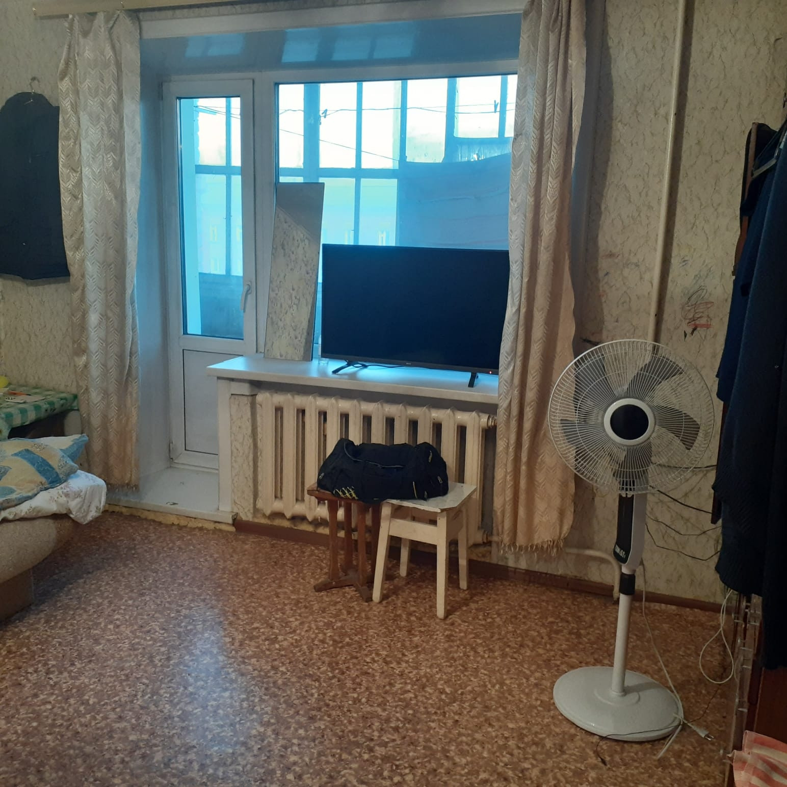 продам 1-комнатную на среднем этаже. Квартира требуют капитального ремонта. Рядом остановка, магазины.