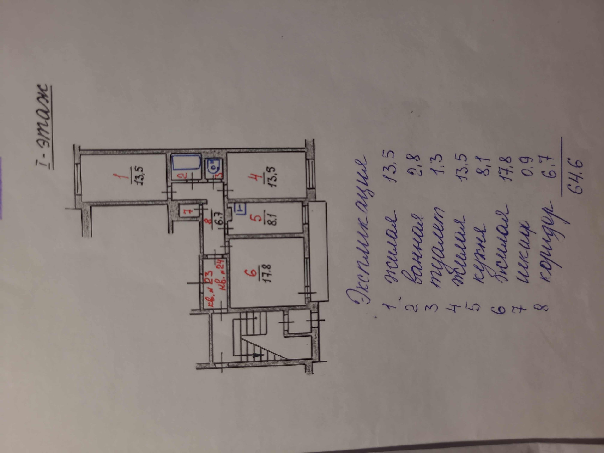 Общая площадь 64.6 м2
