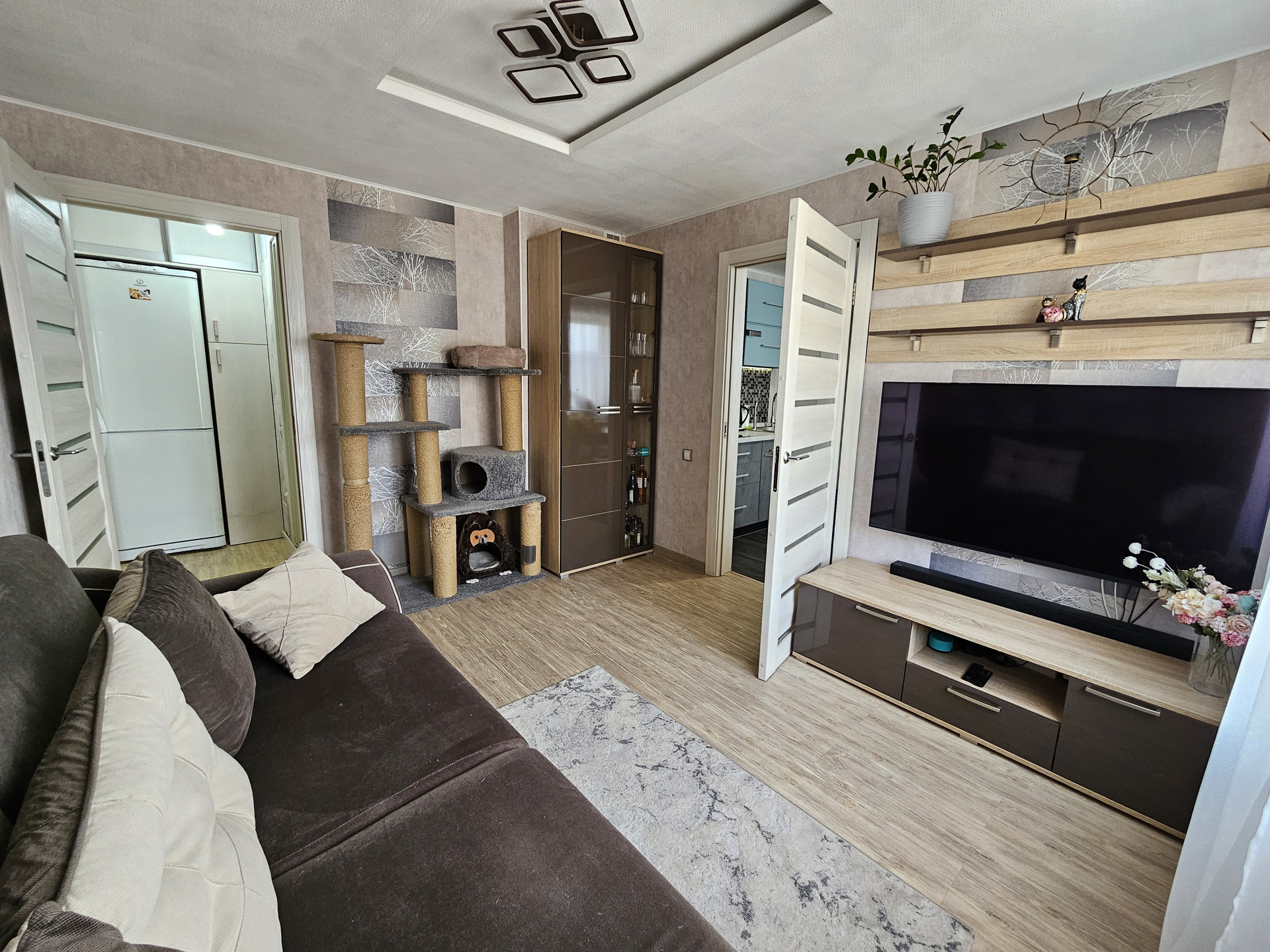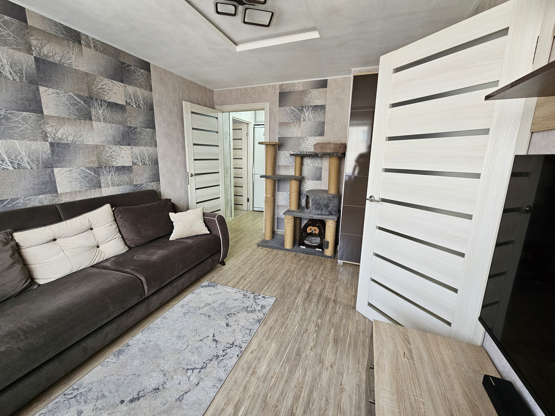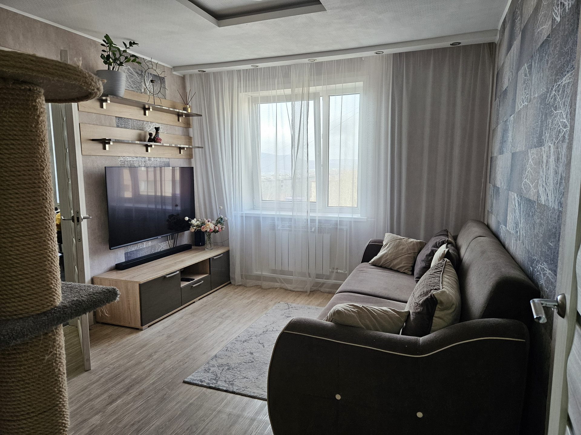 Продам 3-х комнатную благоустроенную квартиру в микрорайоне "Солнечный". 3 этаж в пятиэтажном панельном доме, солнечная сторона. Дом находится рядом со школой №10 50 м, рядом два больших магазина "Народный", "Терция", остановка автобуса "Солнечная"., в соседнем доме управляющая компания и почтовое отделение. В квартире большая детская комната, которая находится в удалении от основной спальни, что является большим преимуществом, просторная спальня с гардеробной комнатой, уютная гостинная , большая кухня 11,5кв.м. Санузел раздельный. В прихожей , на кухне и в ванной комнате теплый пол. Покупателям остается кухня со всей встроенной техникой (вытяжка, индукционная варочная панель, духовой шкаф, посудомоечная машина). Вся мебель в детской комнате. Также остаются два шкафа купе (в прихожей и детской), душевая кабина, водонагреватель 80л. Остальная мебель может быть оставлена за отдельную плату по согласованию. Возможен торг.