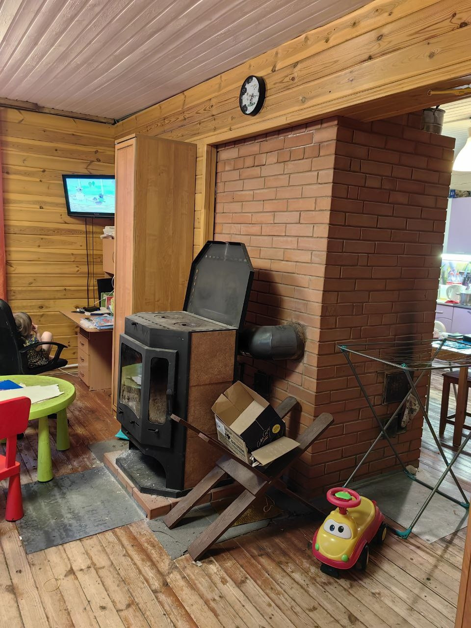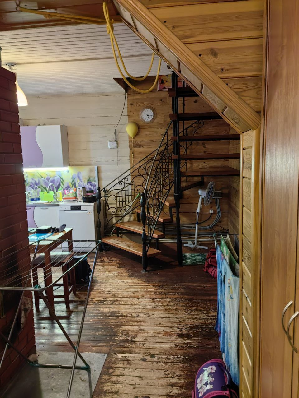 Тёплый в 2 этажа. Санузел в доме. Печь, камин. На первом этаже прихожая ,гостиная ,санузел, кухня столовая.