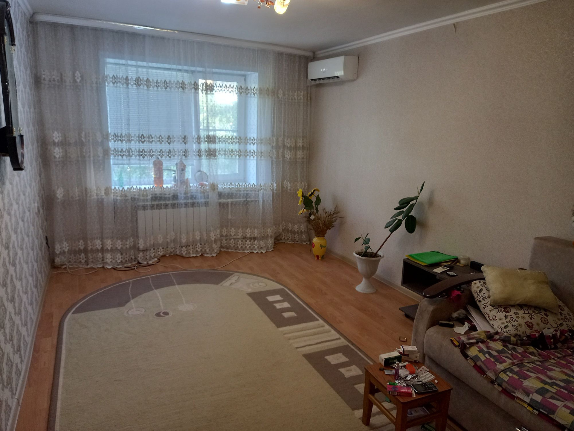 продаётся 3 комнатная квартира с мебелью,  заходи и живи.  Окна ПВХ,  лоджия застеклена,  кондиционер. Рядом школа,  больница, сетевые магазины,  рынок.  тихий ухоженный двор, хорошие соседи.  Продаётся в связи с переездом.