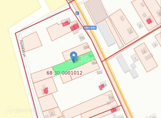 Участок на первой линии к ул. Большая Садовая, другая сторона участка в первой линии к ул. Полевая. Ул. Большая Садовая это основная транспортная дорога Уварово, асфальтированная с оживленным транспортным движением.