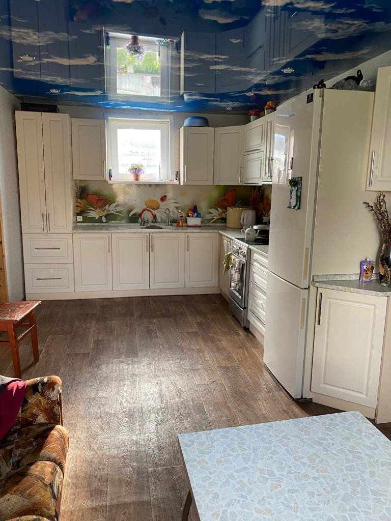 Вода в доме-скважина,боллер ,слив .Большая кухня,2 комнаты,прихожая,душевая . Дом очень тёплый,светлый .Опопление печное и электрическое ,зимой ведра угля хватает на сутки ,сделан нормальный ремонт .Надворные постройки,погреб,тёплая стайка ,огород ,торг уместен