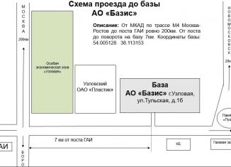База расположена на въезде в г.Узловая по автодороге Тула-Новомосковск. 7км от трассы М4 «Дон», до Москвы 200км, до Тулы 45км, хороший подъезд.База представляет собой комплекс складских и производственных зданий, состоящий из 9 строений. Общая площадь всех помещений около 6000м2. Площадь территории 4Га. Центральные склады (1042м2 и 1795м2) имеют погрузо-разгрузочну... |