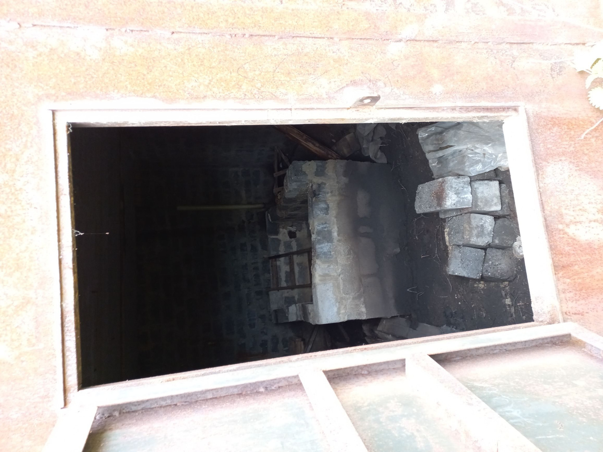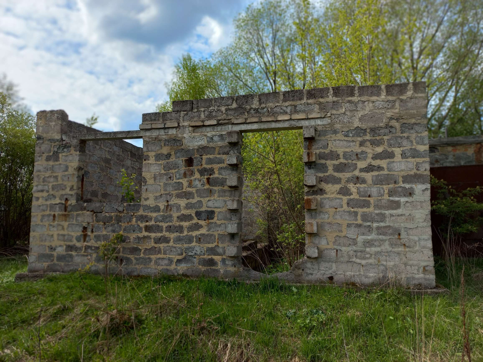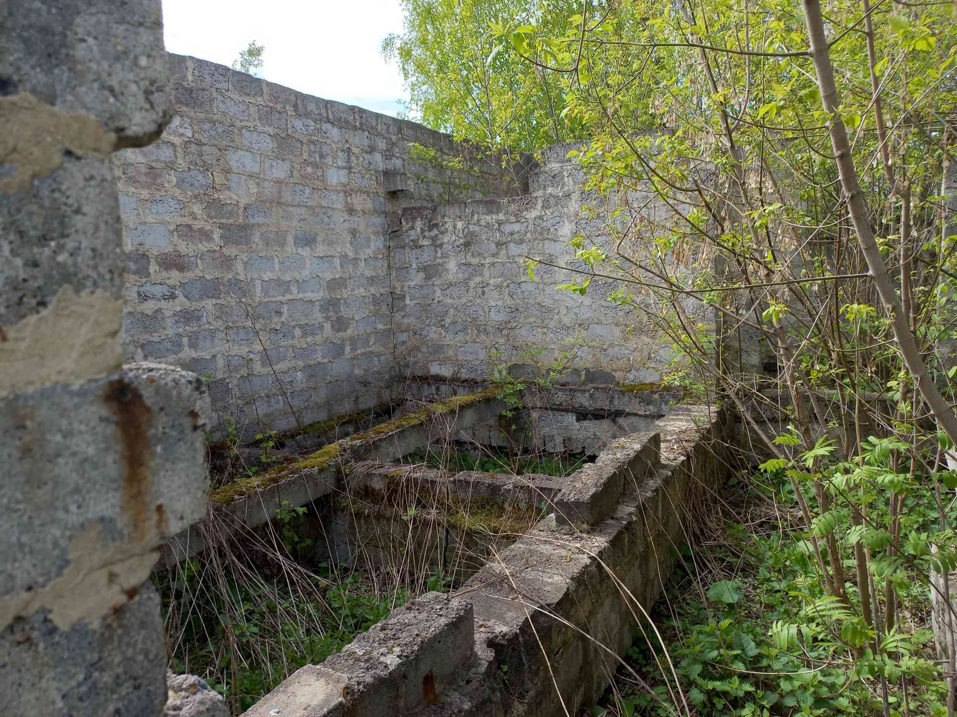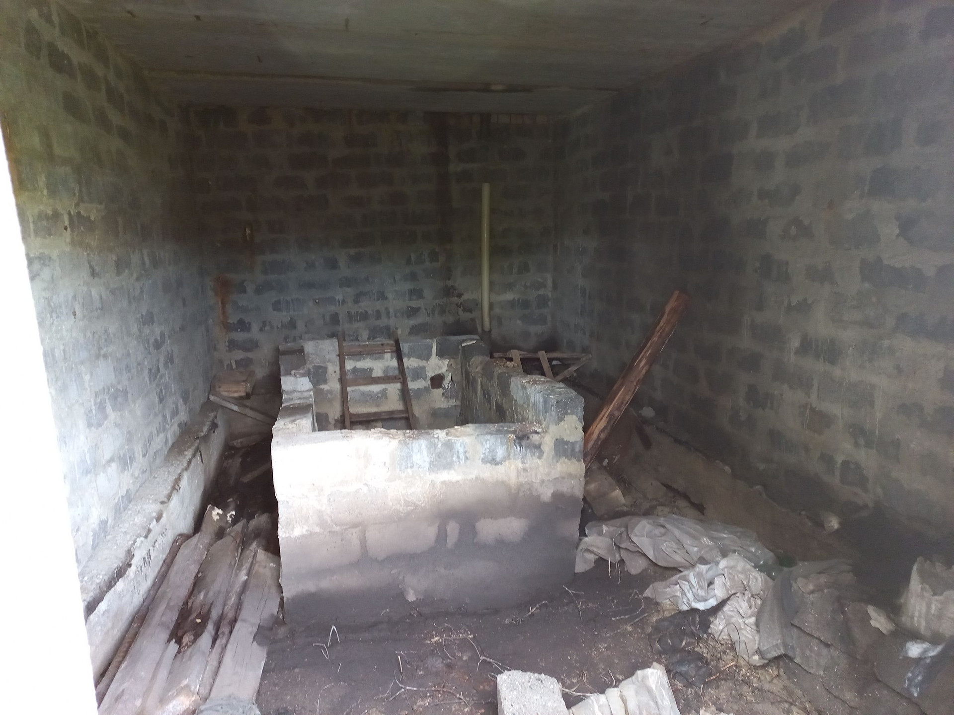 участок с недостоеным домом и гаражом, на участке комуникации, электричество, газ,  вода неподалеку, калализация