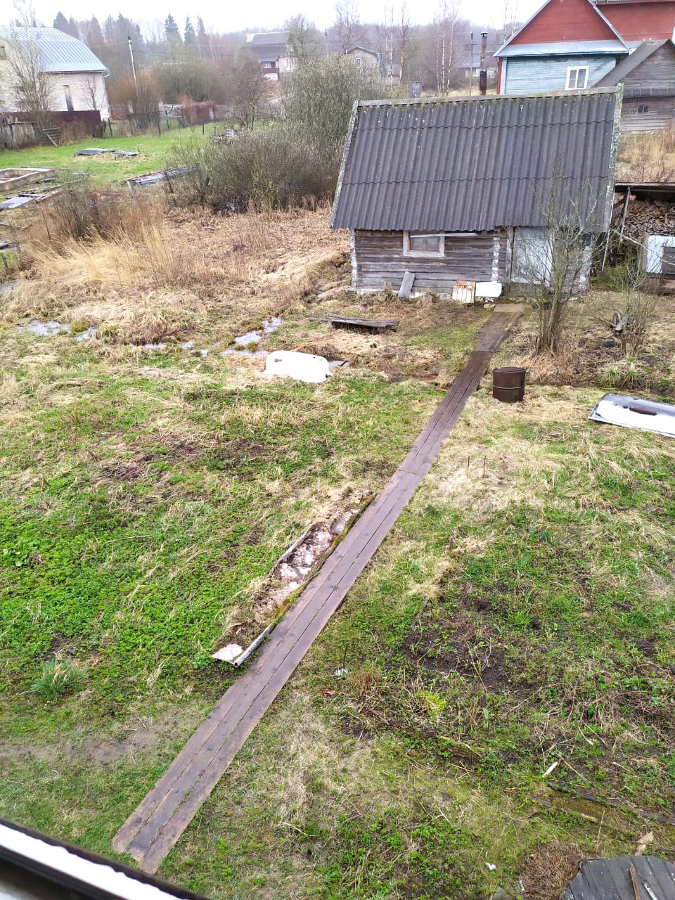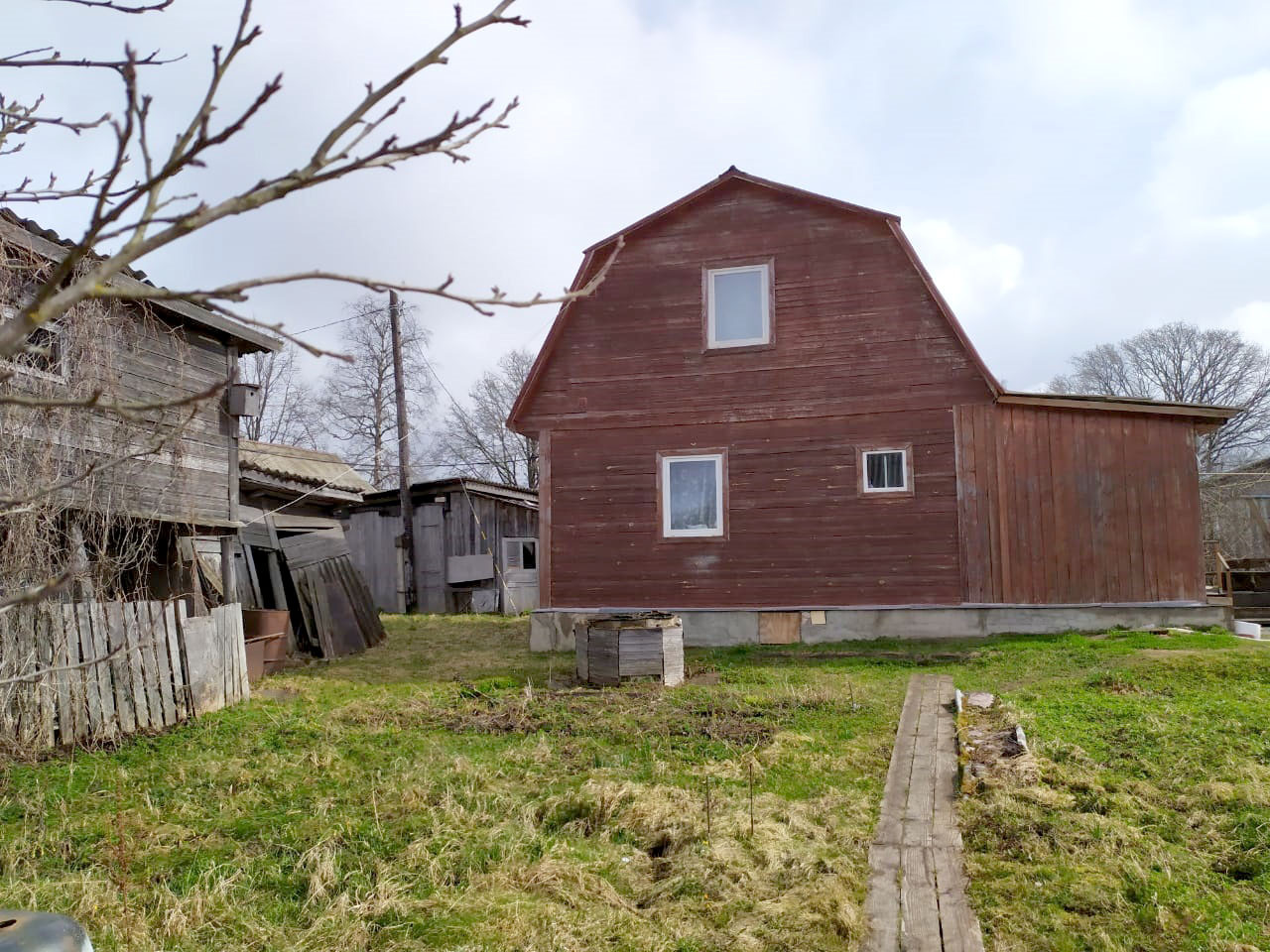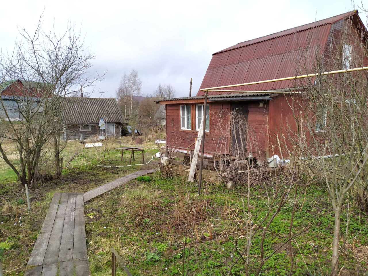 На участке построена баня, гараж, рубленный хоздвор, дровник, высажены плодовые деревья и кустарники!