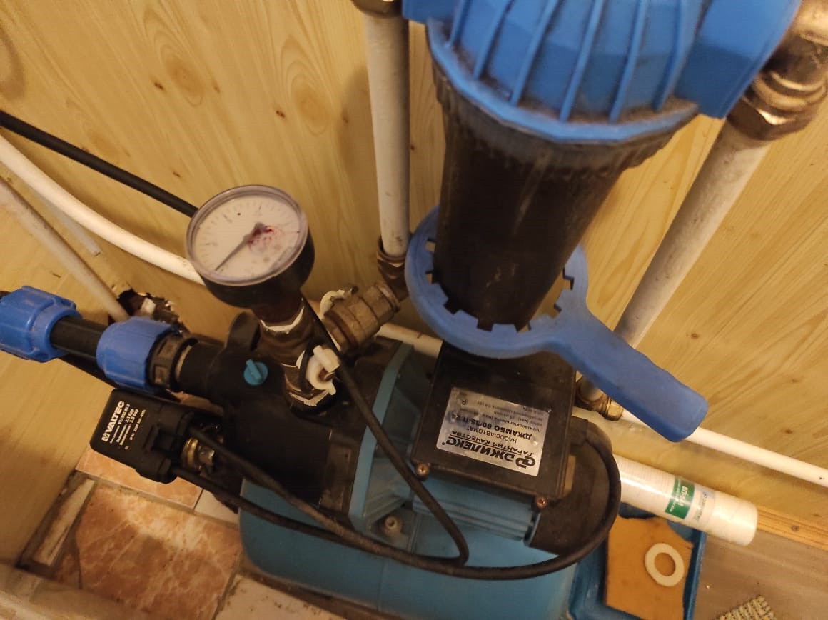 Вода из колодца (на участке) с  насосной станцией.