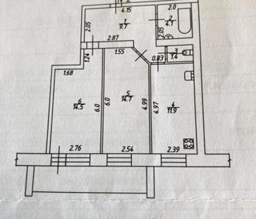 Общая площадь 56.3 м2