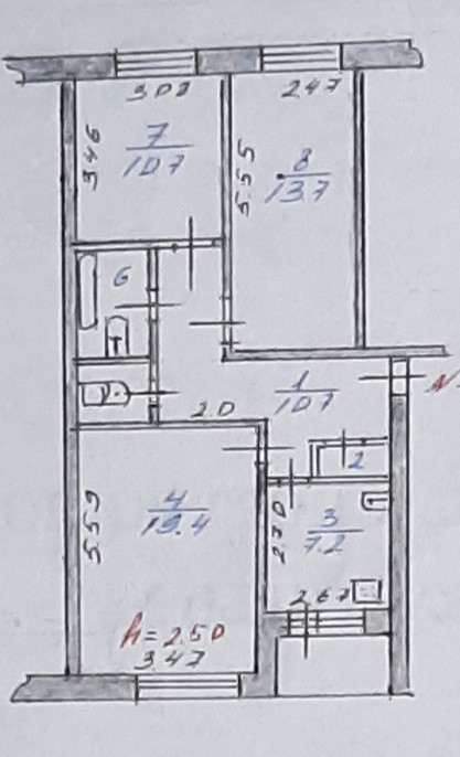 Высота потолков 2.5 м