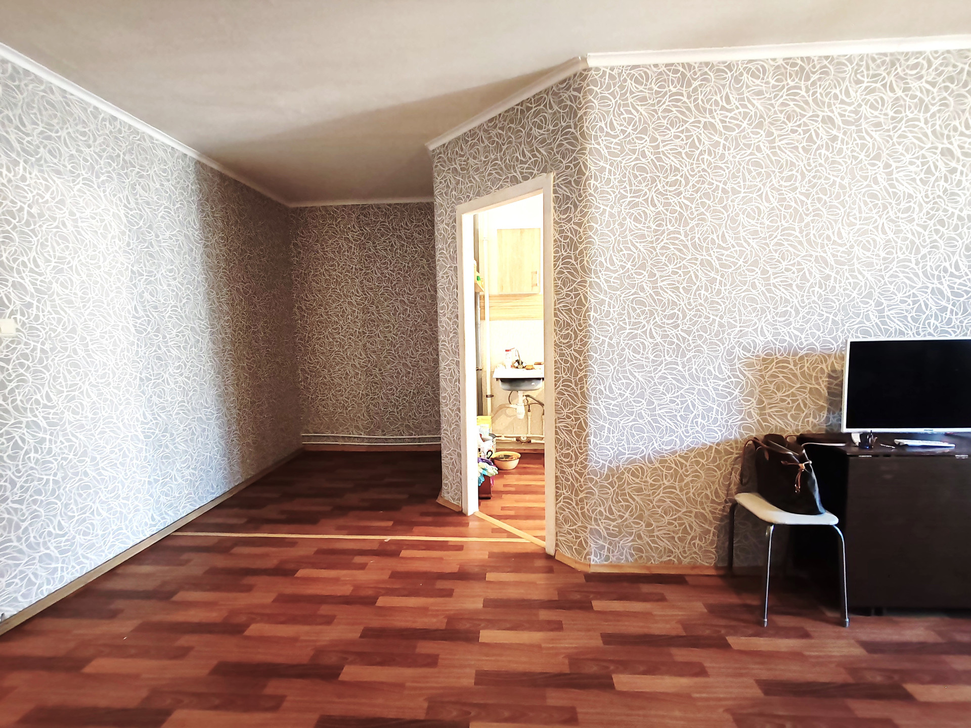 Квартира имеет хорошо спланированную площадь, которая включает в себя комнату, совмещённый санузел и кухню площадью 8 квадратных метров. Также имеется балкон, откуда открывается вид на двор и улицу. В квартире проведён косметический ремонт, что позволит новым владельцам сразу заселиться без дополнительных вложений.