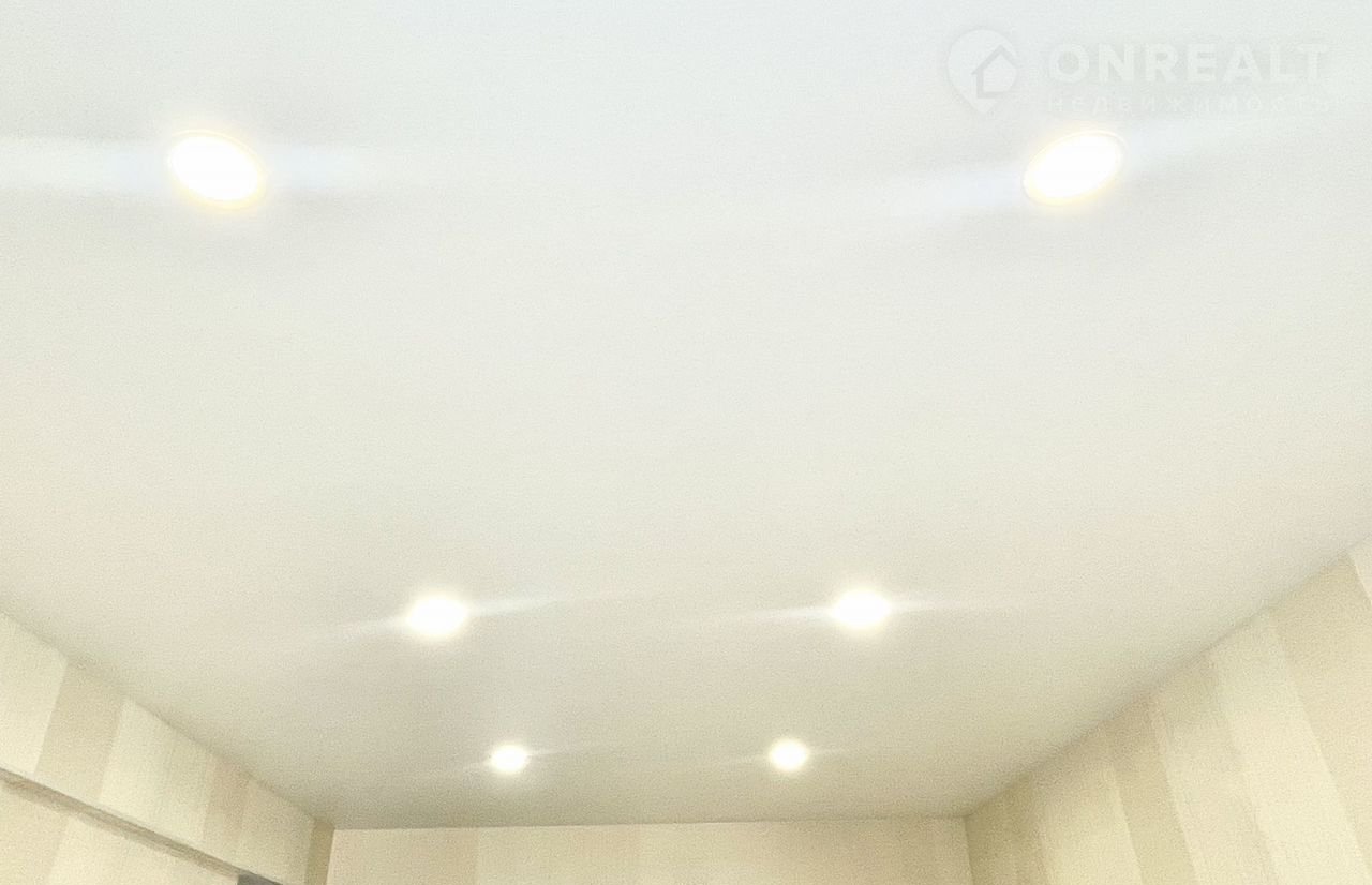 - в двух комнатах и прихожей - натяжные потолки, в кухне и санузле - навесные потолки